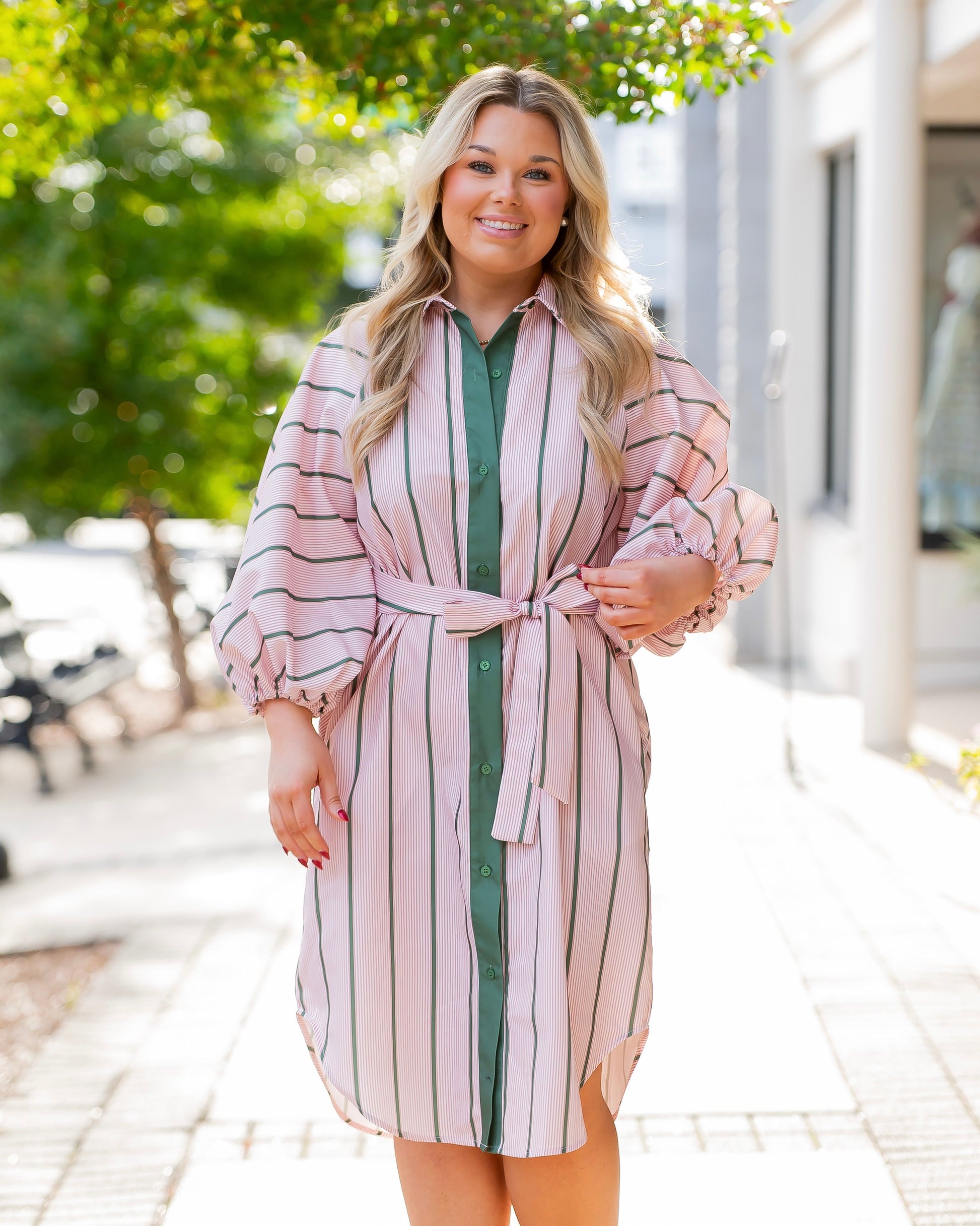 Introducing the Cora Bubble Sleeve Striped Dress—your new go-to for effortless style! This playful piece features bold red and green stripes that pop, paired with charming bubble sleeves for a touch of whimsy. Practical pockets keep your essentials close, while the fun dolphin hem adds personality to every step. One size fits most, making it the perfect grab-and-go dress for any occasion. Comfortable, cute, and ready to turn heads!