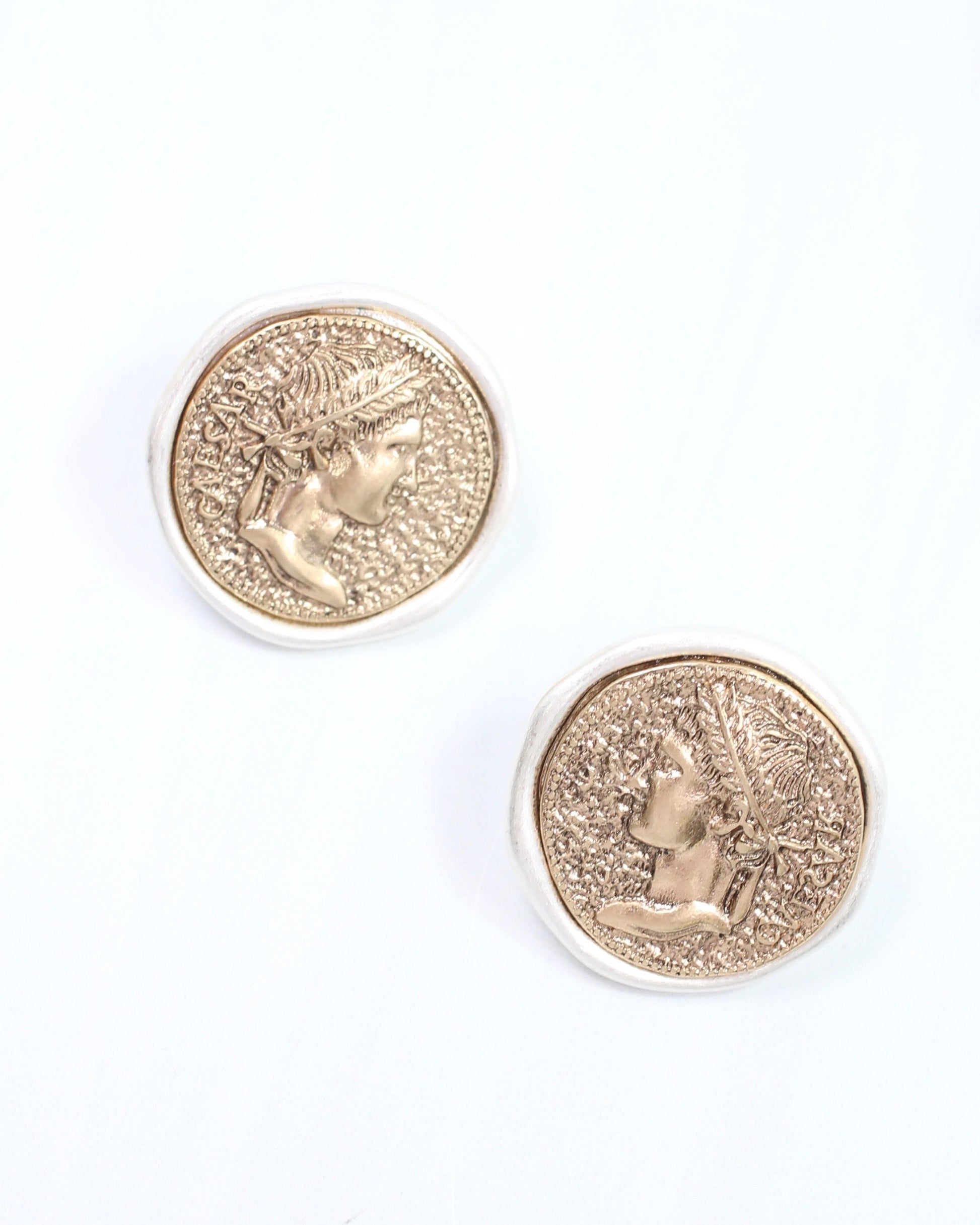 Add a touch of vintage charm with the Alexander Coin Earring in Worn Gold. Featuring a worn silver backing and a classic worn gold coin center, these earrings bring a playful yet classy vibe to any outfit.