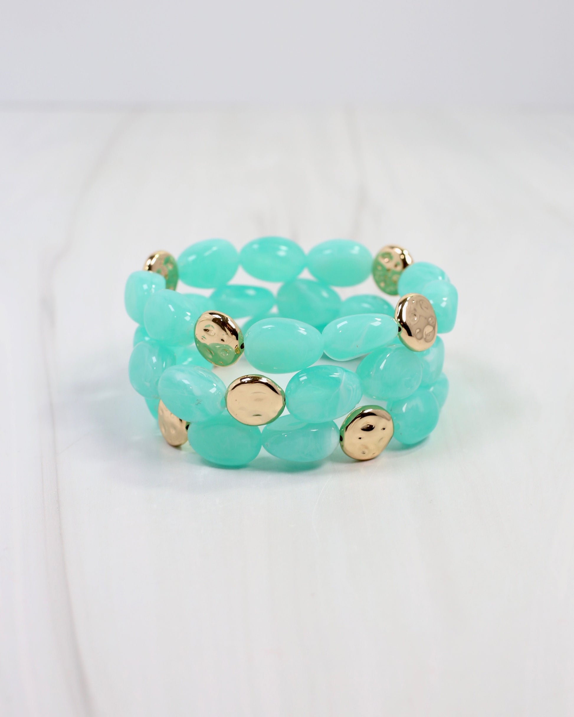 Refresh your wrist game with the Amesbury Beaded Bracelet Set in Aqua. Three stretch bracelets in calming aqua hues layer beautifully or stand alone. Easy to wear, endlessly stylish, and perfect for any season.