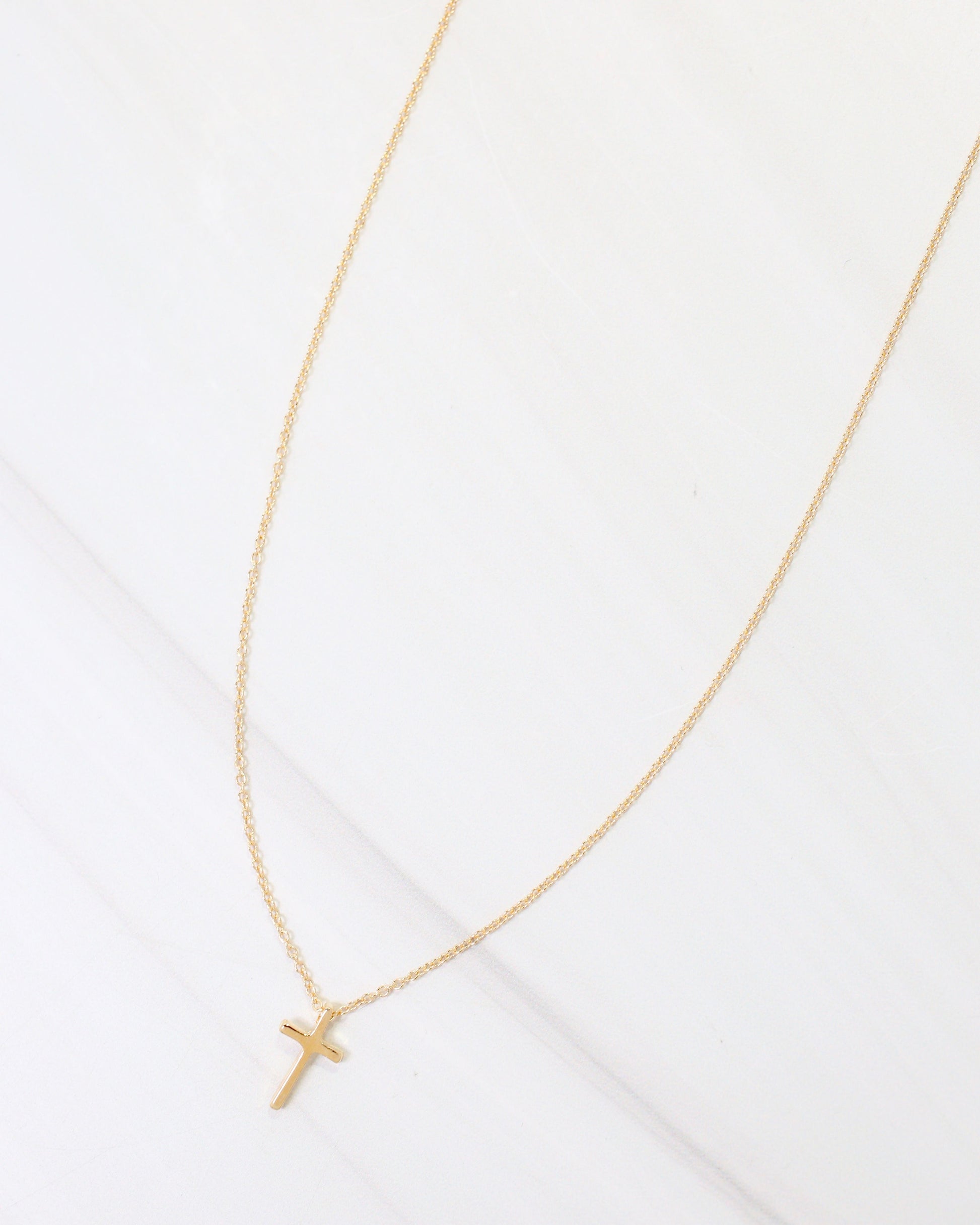 Make a meaningful statement with the Babylon Cross Necklace in gold. This elegant pendant features a refined cross design suspended from a delicate chain, creating a timeless piece that works beautifully layered or worn solo. The warm silver finish brings subtle radiance to your neckline while the classic cross silhouette carries both spiritual significance and enduring style. Perfect for everyday wear or special occasions, this versatile necklace is a cherished addition to any jewelry collection.