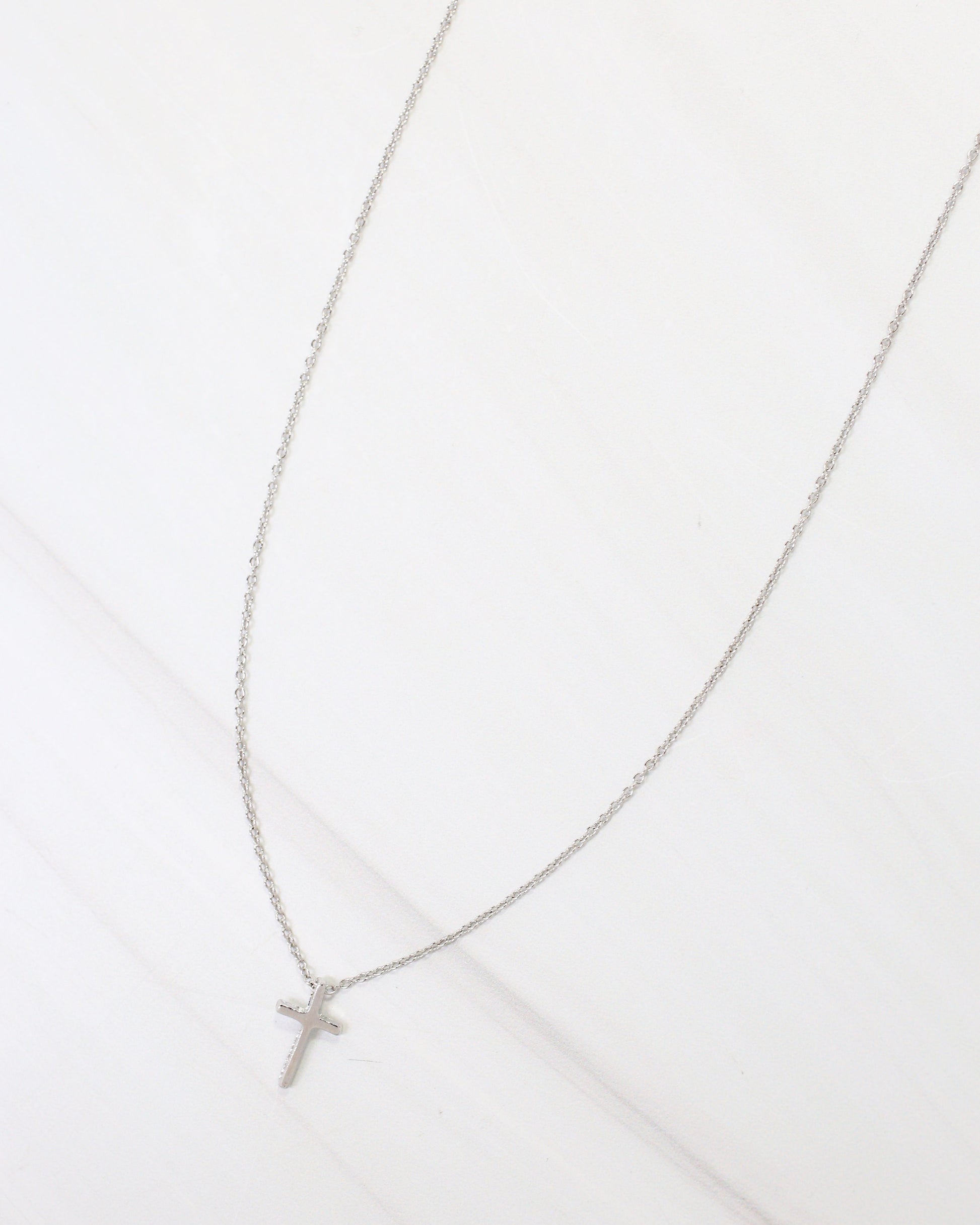 Make a meaningful statement with the Babylon Cross Necklace in silver. This elegant pendant features a refined cross design suspended from a delicate chain, creating a timeless piece that works beautifully layered or worn solo. The warm silver finish brings subtle radiance to your neckline while the classic cross silhouette carries both spiritual significance and enduring style. Perfect for everyday wear or special occasions, this versatile necklace is a cherished addition to any jewelry collection.