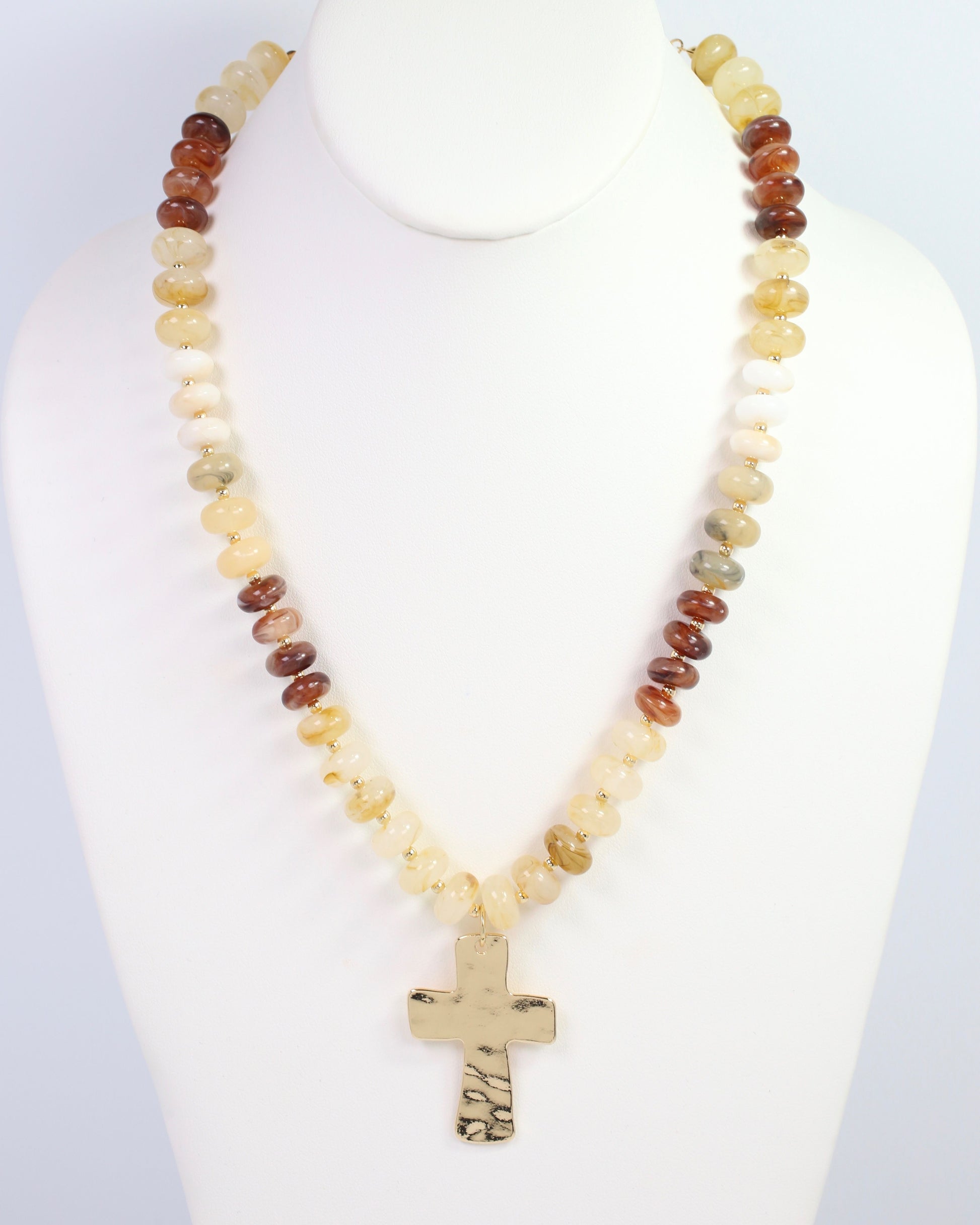 Embrace natural elegance with the Berkeley Stone Beaded Cross Necklace in Natural tones. Featuring earthy stone beads and a charming cross pendant, this necklace blends timeless faith-inspired style with a fashionable and fun vibe. Perfect for adding a warm, grounded touch to any outfit.