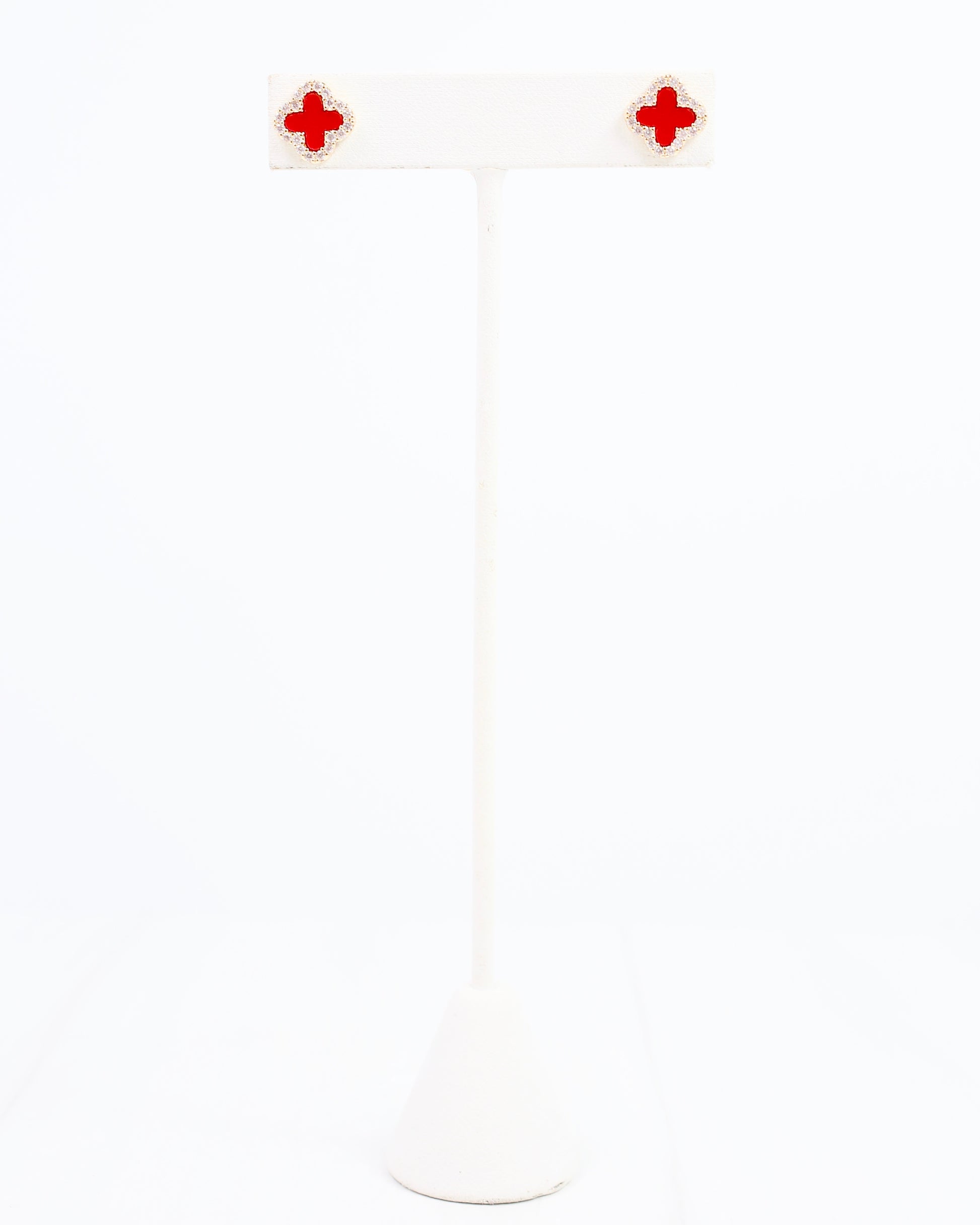 Bisbee CZ Clover Stud Earring Red