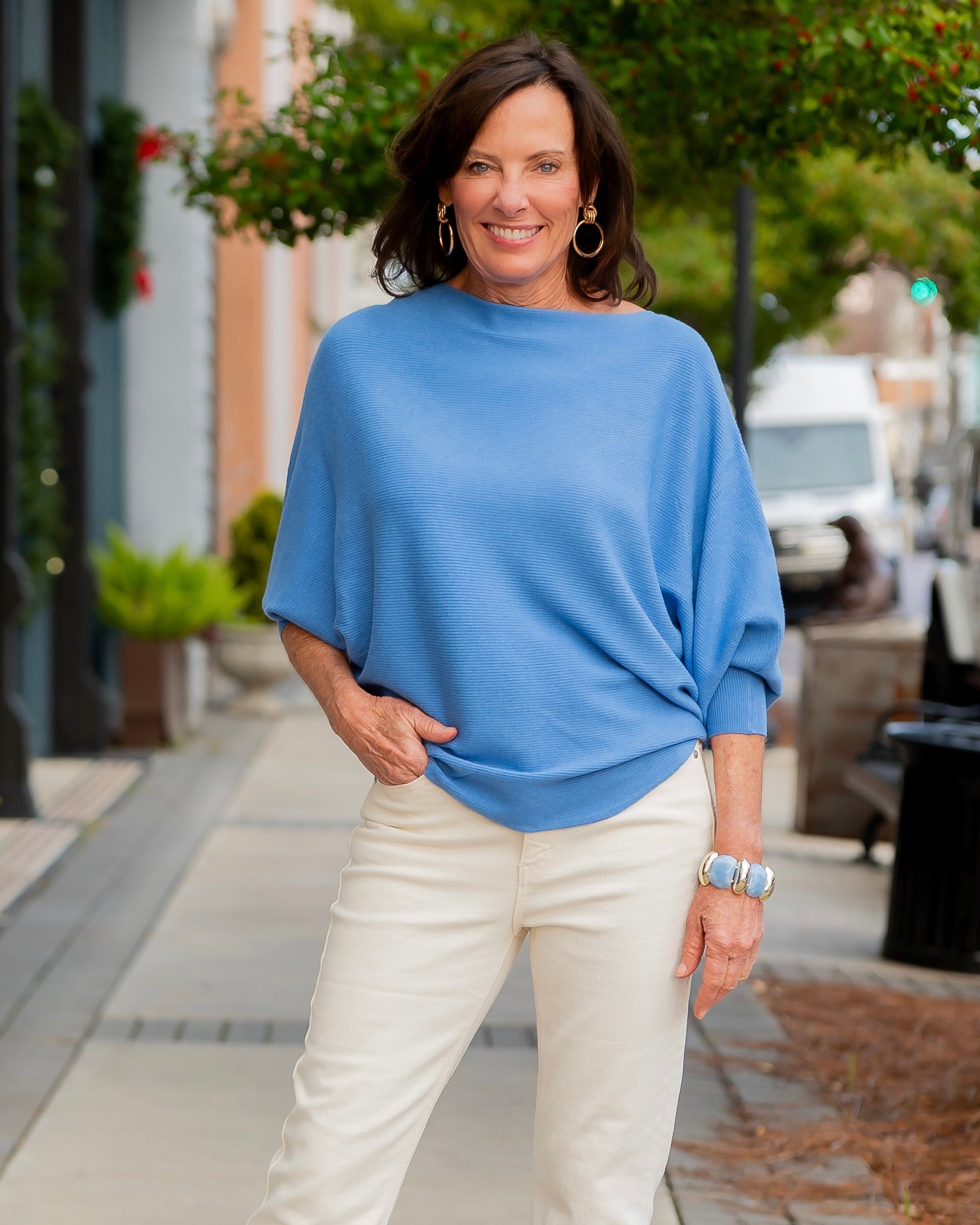 Effortlessly chic and undeniably cozy, the Ryu Drop Shoulder Top in Blue Frost is your new wardrobe essential. Featuring a relaxed drop shoulder silhouette that skims beautifully over the body, this soft knit piece drapes with an easy elegance. The wide neckline adds a modern, laid-back vibe perfect for styling solo or layered, while the rounded hem keeps things polished and playful. Slip it on for instant cool-girl appeal that works from coffee runs to casual hangouts.