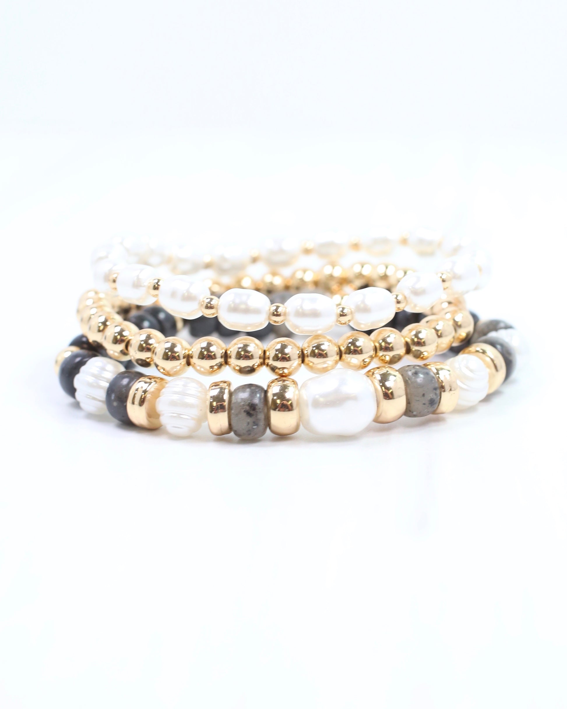 Bowie Bead and Pearl Stretch Bracelet Set Black