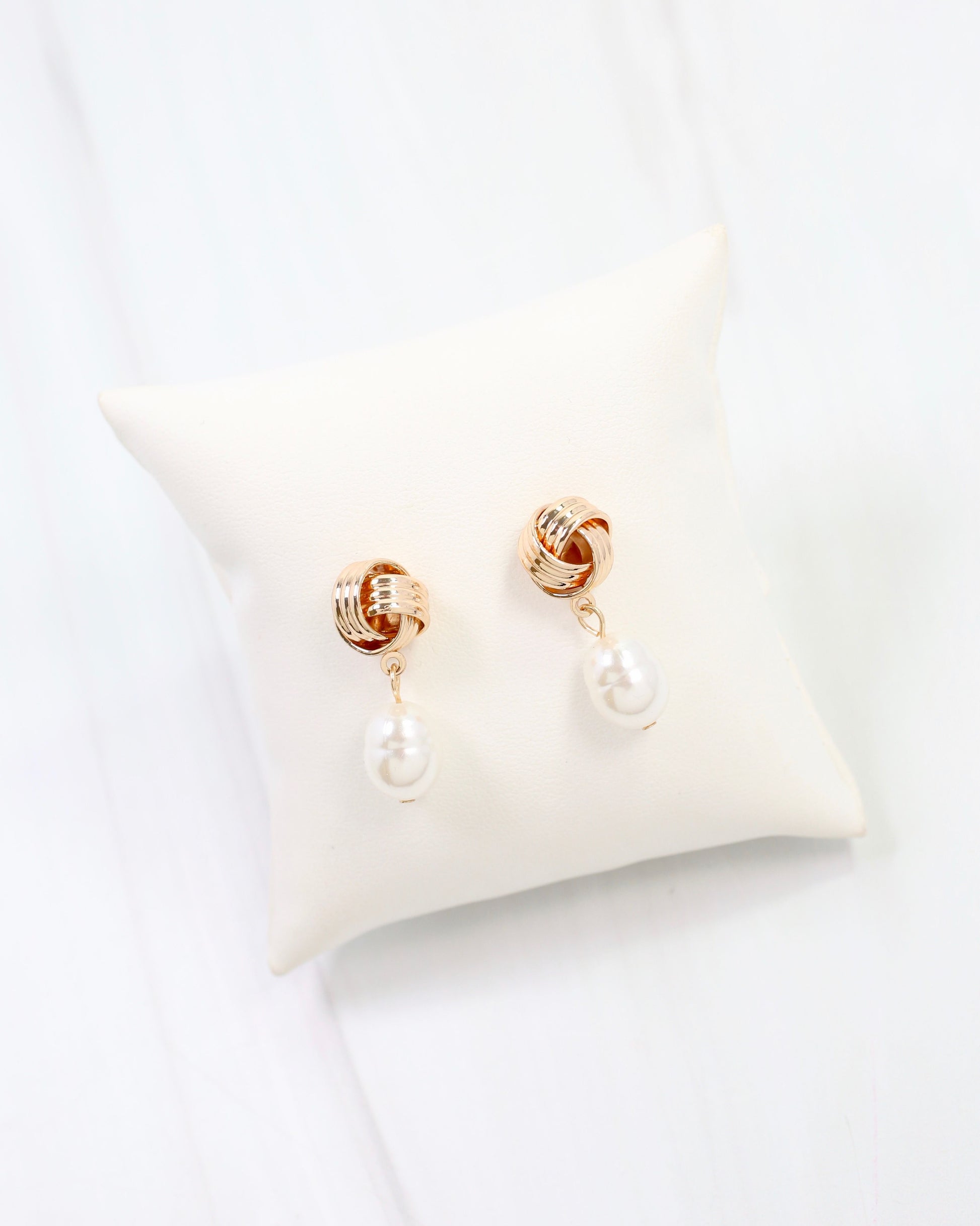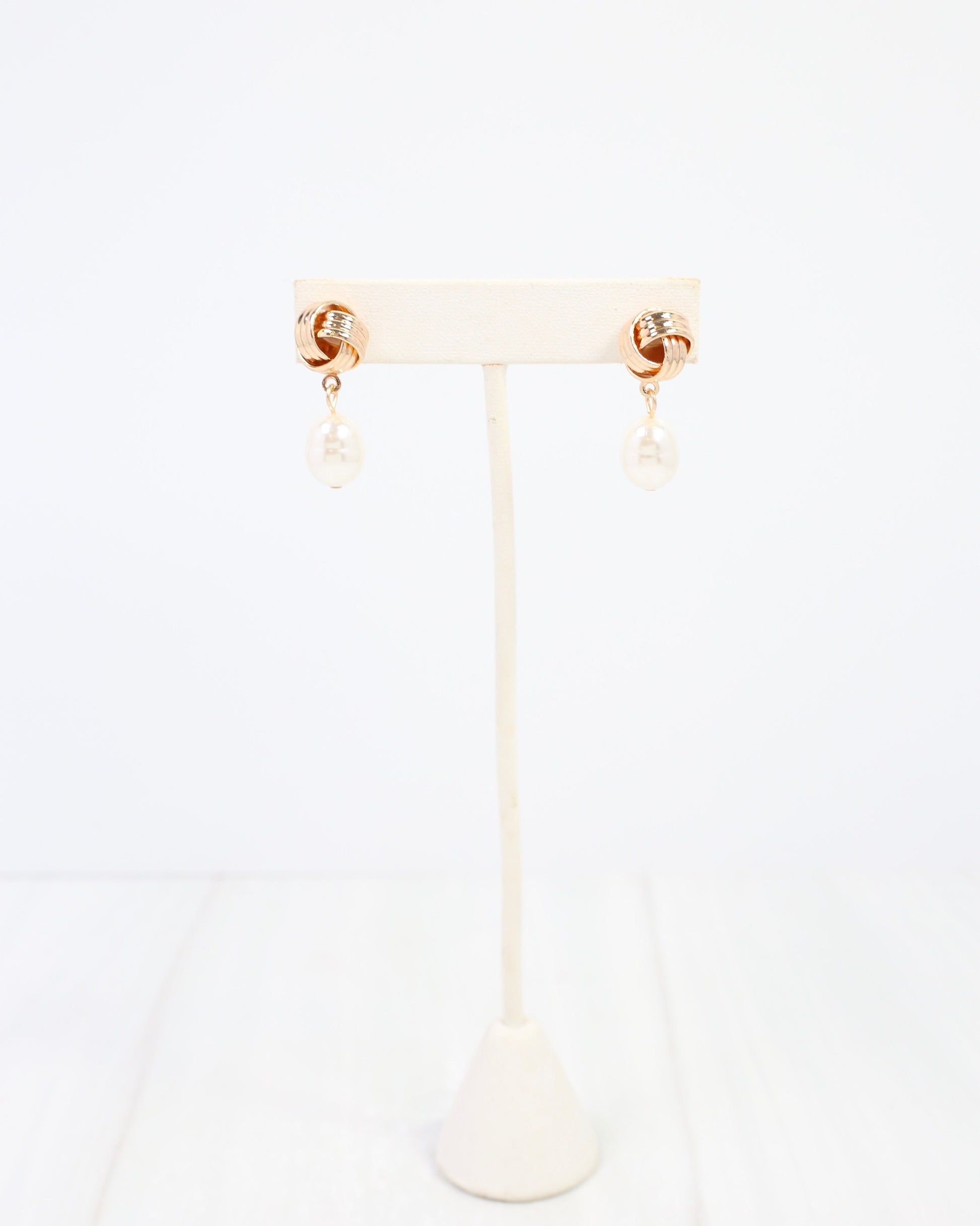 Branson Knot and Pearl Drop Earring Gold