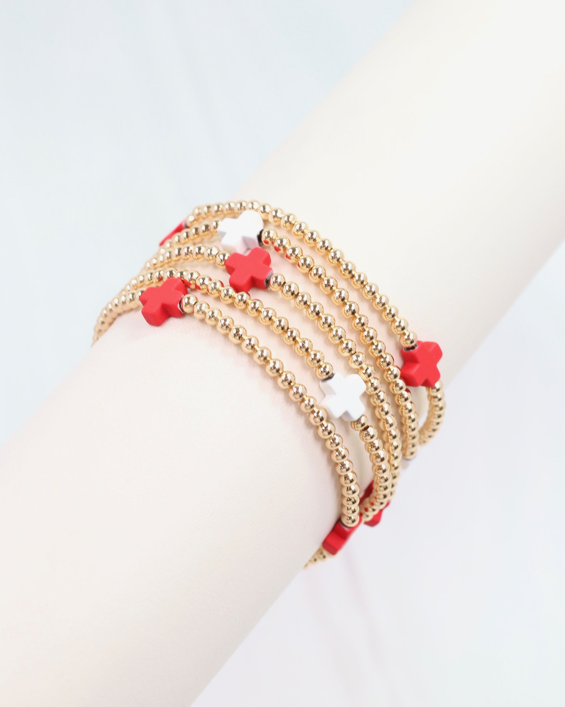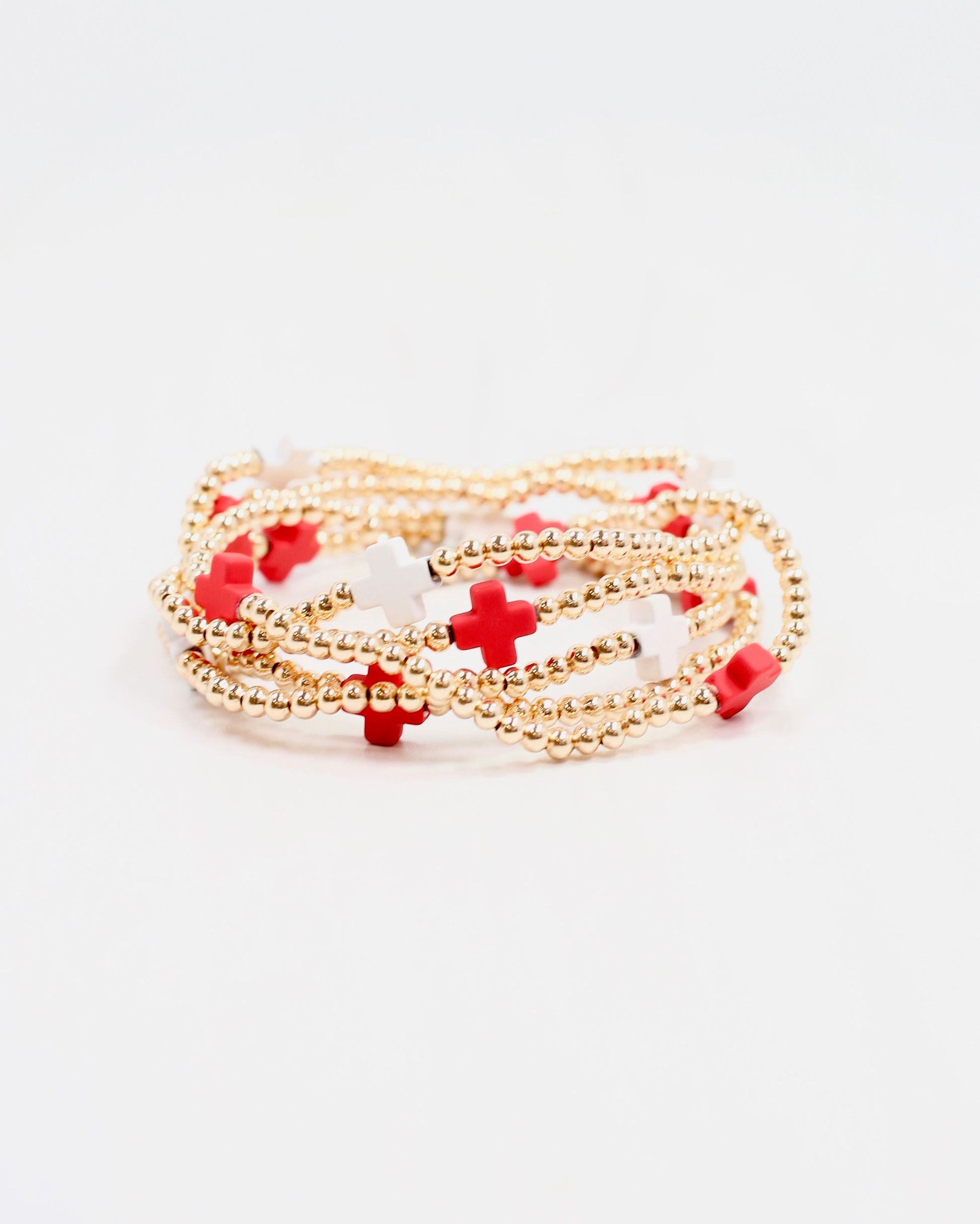 Brittany Cross Bracelet Set RED WHITE