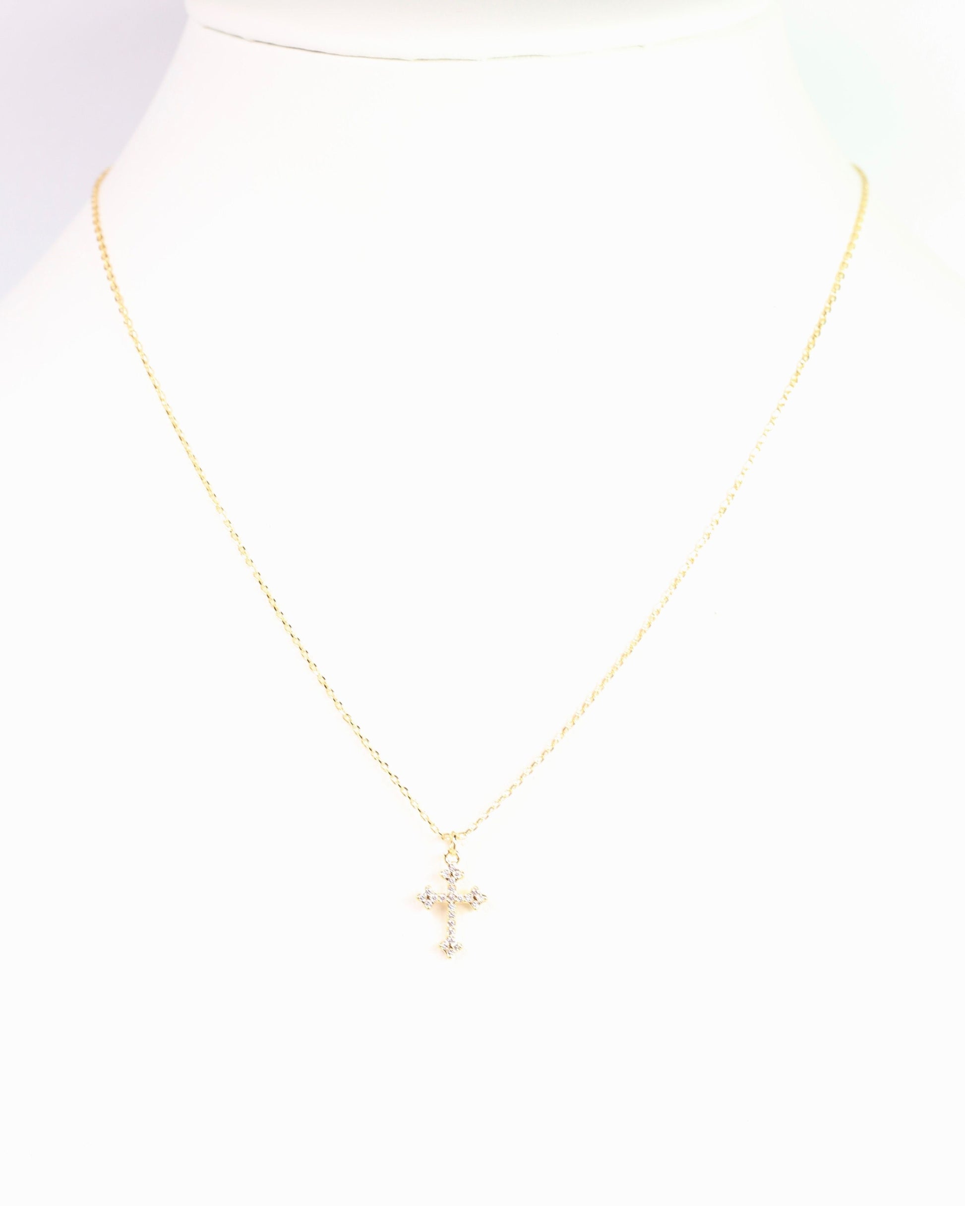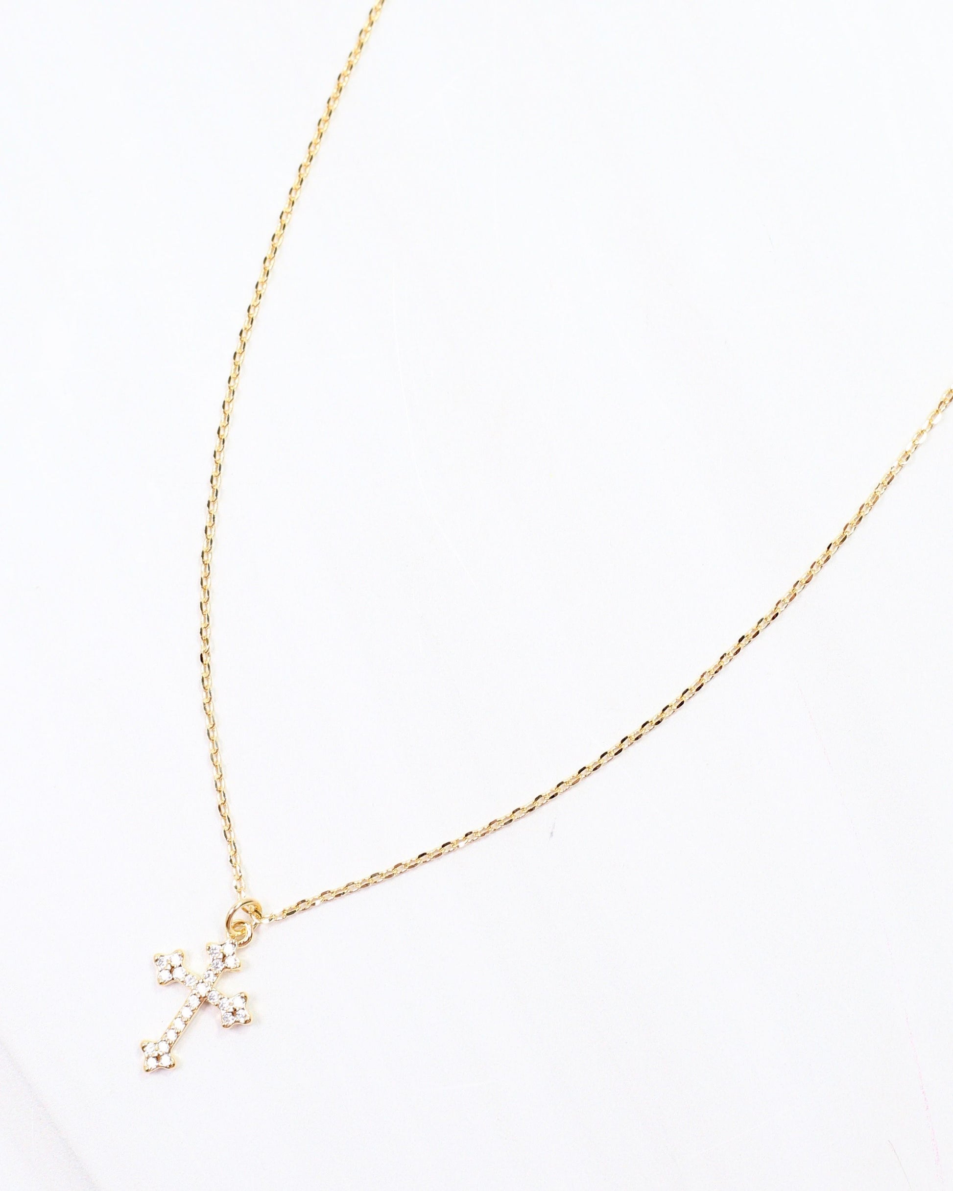Add a touch of charm with the Camden Road Cross Necklace in Gold. Featuring a delicate gold-dipped brass chain and a sparkling pave old world cross, this playful piece effortlessly blends vintage vibes with modern style.