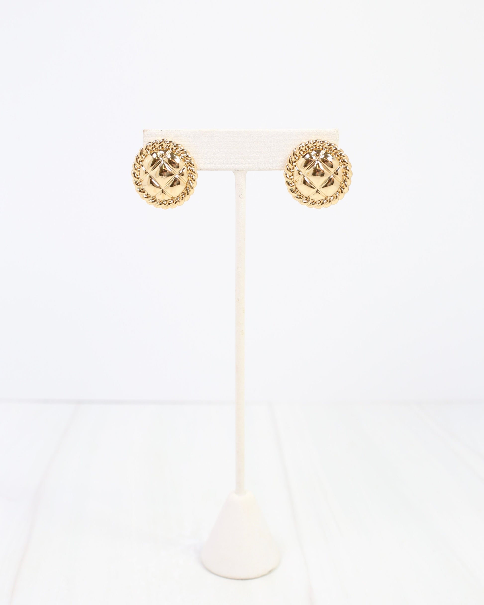 Upgrade your style with the Carmel Textured Stud Earrings in gold. Featuring a quilted center design framed by a nautical rope-inspired round border, these earrings offer a chic, fashion-forward blend of texture and detail that elevates any outfit.