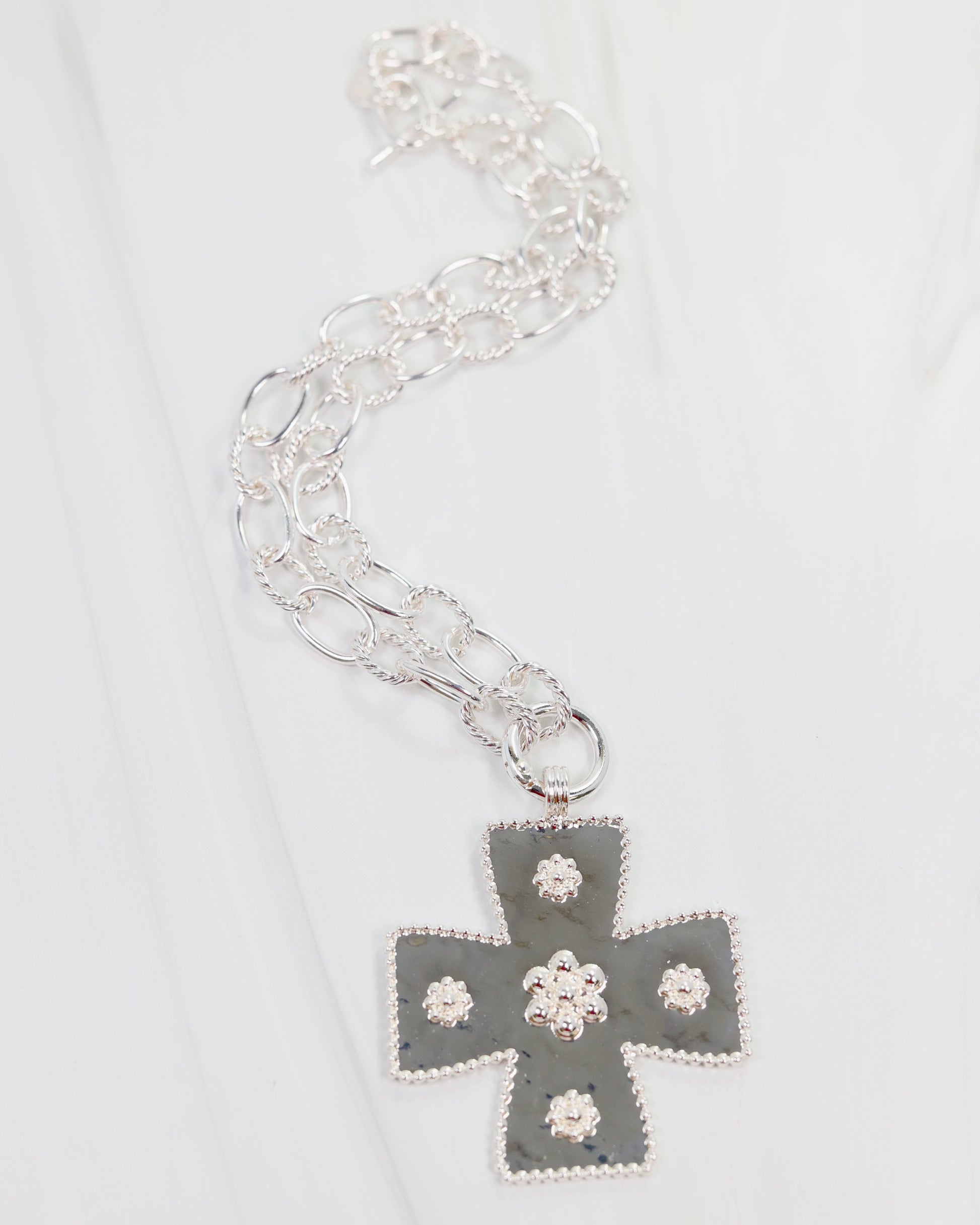 Make a statement with the Carol Large Cross Charm Necklace in Silver! The best part? The charm is removable, giving you versatile style options. Whether dressed up or down, this bold necklace adds a cool edge to any outfit—effortlessly chic and endlessly wearable.