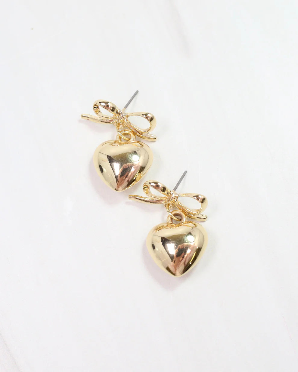 This absolutely precious earring has a shiny metal bow post with a puffed heart drop accent. Whether you’re dressing up for a special occasion or adding a cute touch to your everyday look, these earrings are sure to make a lovely statement.