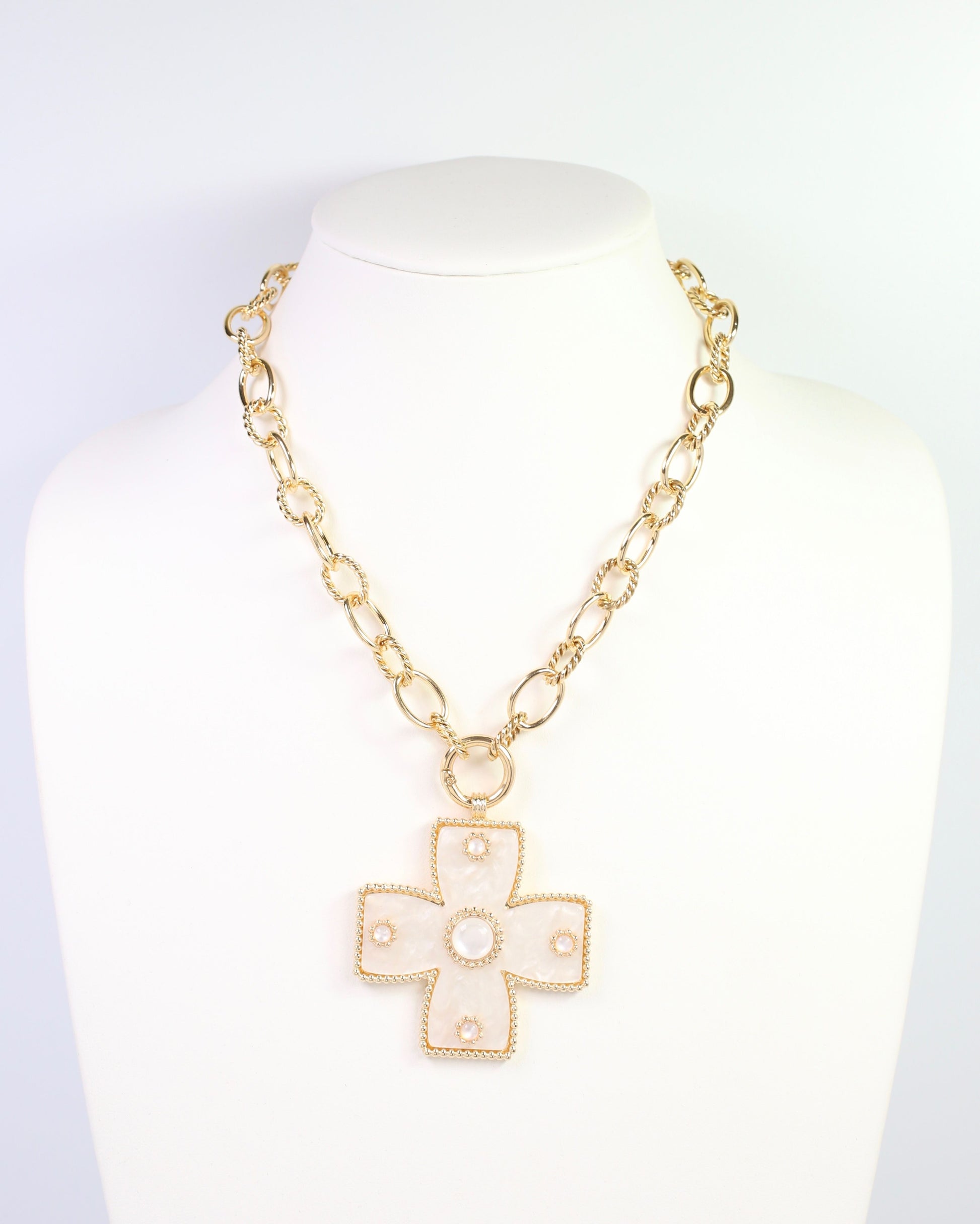 Cayce Large Cross Charm Necklace Mother Of Pearl