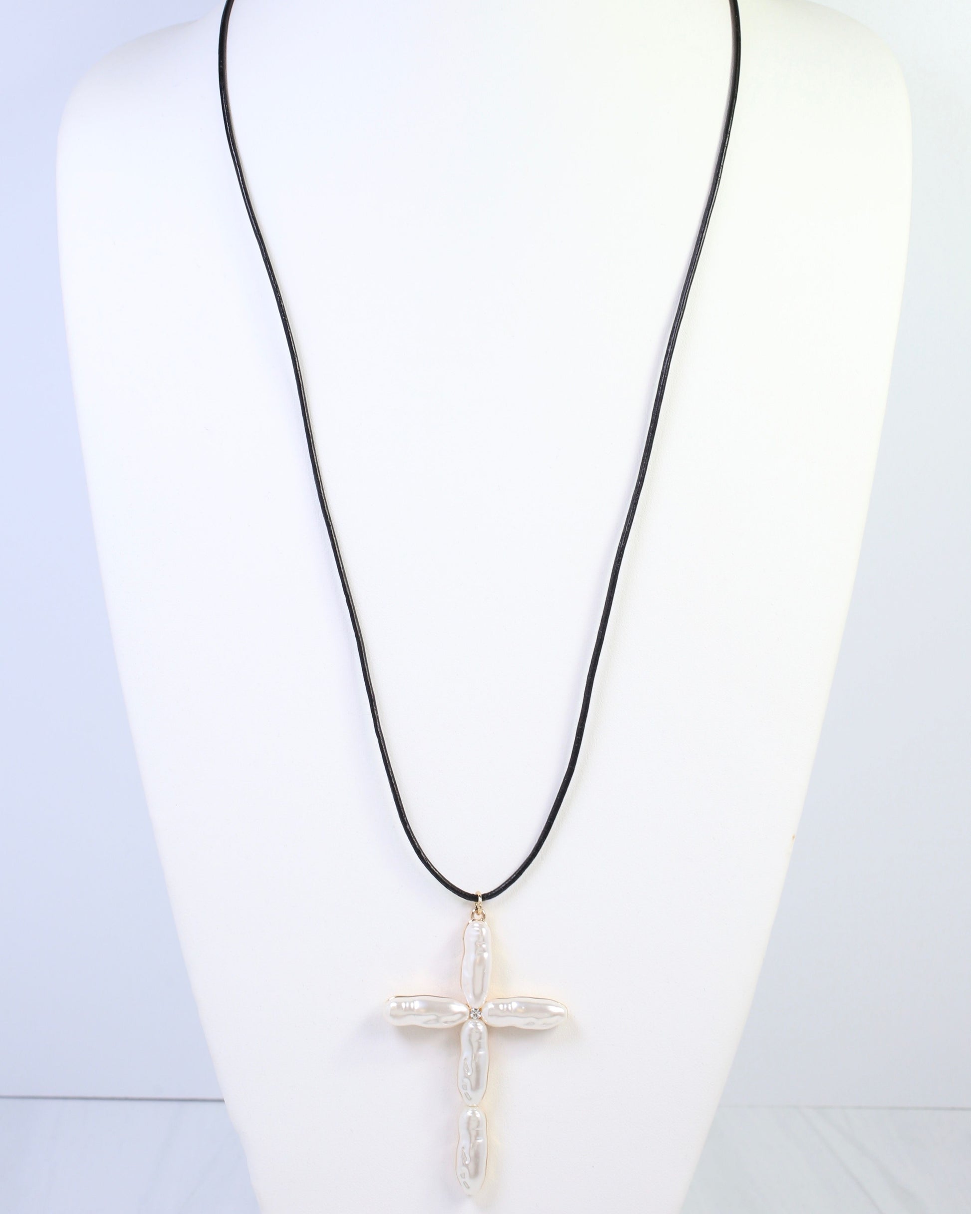 Charlotte Pearl Cross Long Cord Necklace Cream