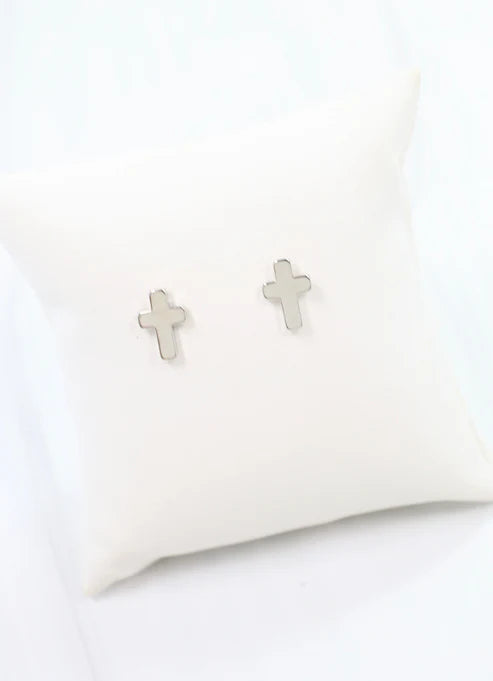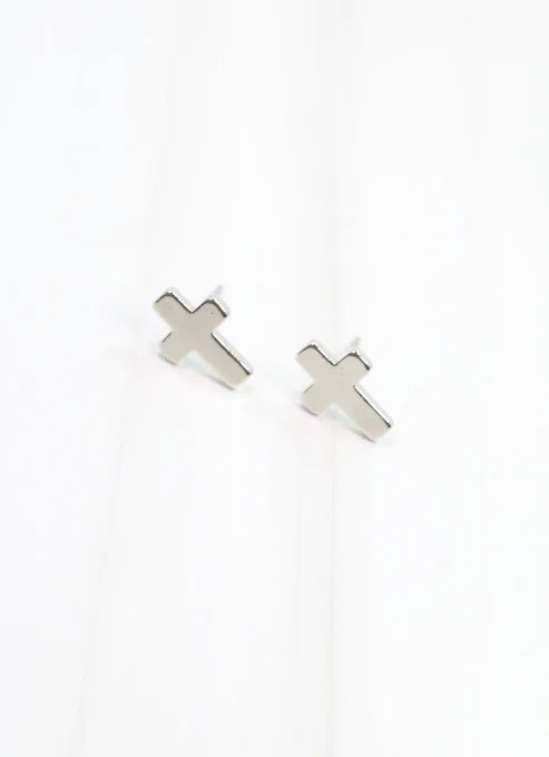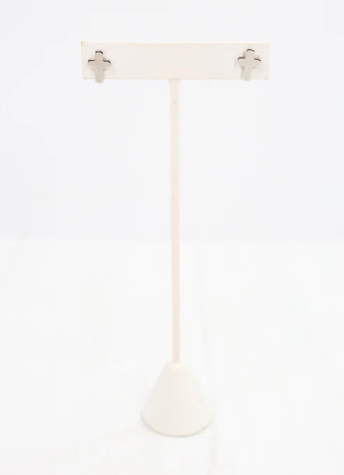 This metal cross earring has a shiny finish and is on a post back. It's a perfect size to complement any look.