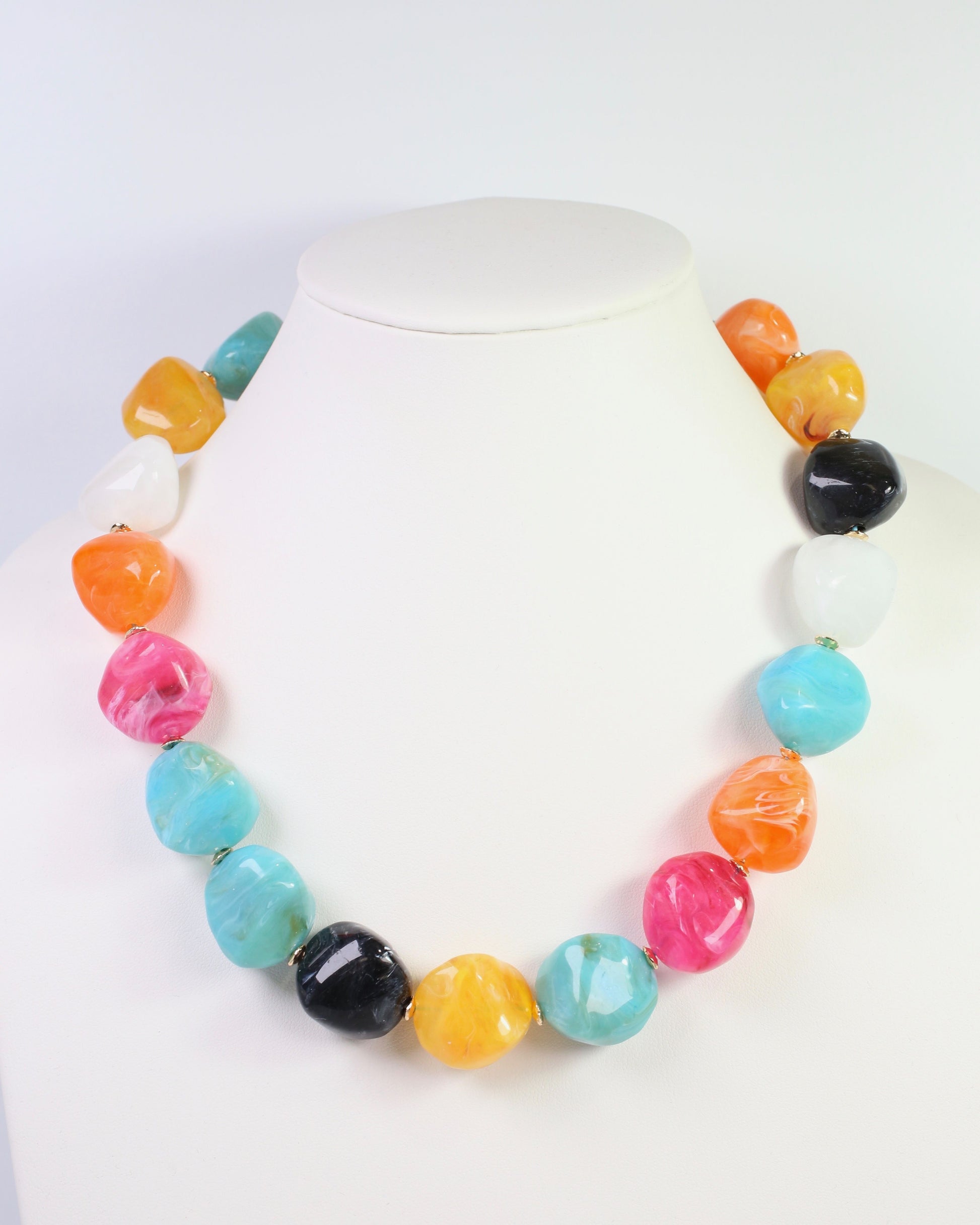 Make a colorful impression with the Clarksdale Marble Necklace in vibrant multi tones. This eye-catching piece showcases a dynamic blend of marble beads in rich jewel tones and warm hues, creating visual depth and personality. The natural stone's intricate patterns add artistic dimension to any outfit, whether you're dressing up or keeping it casual. Versatile enough to coordinate with multiple wardrobes, this statement necklace celebrates individuality and bold style. A conversation-starting accessory that transforms your look with effortless sophistication.
