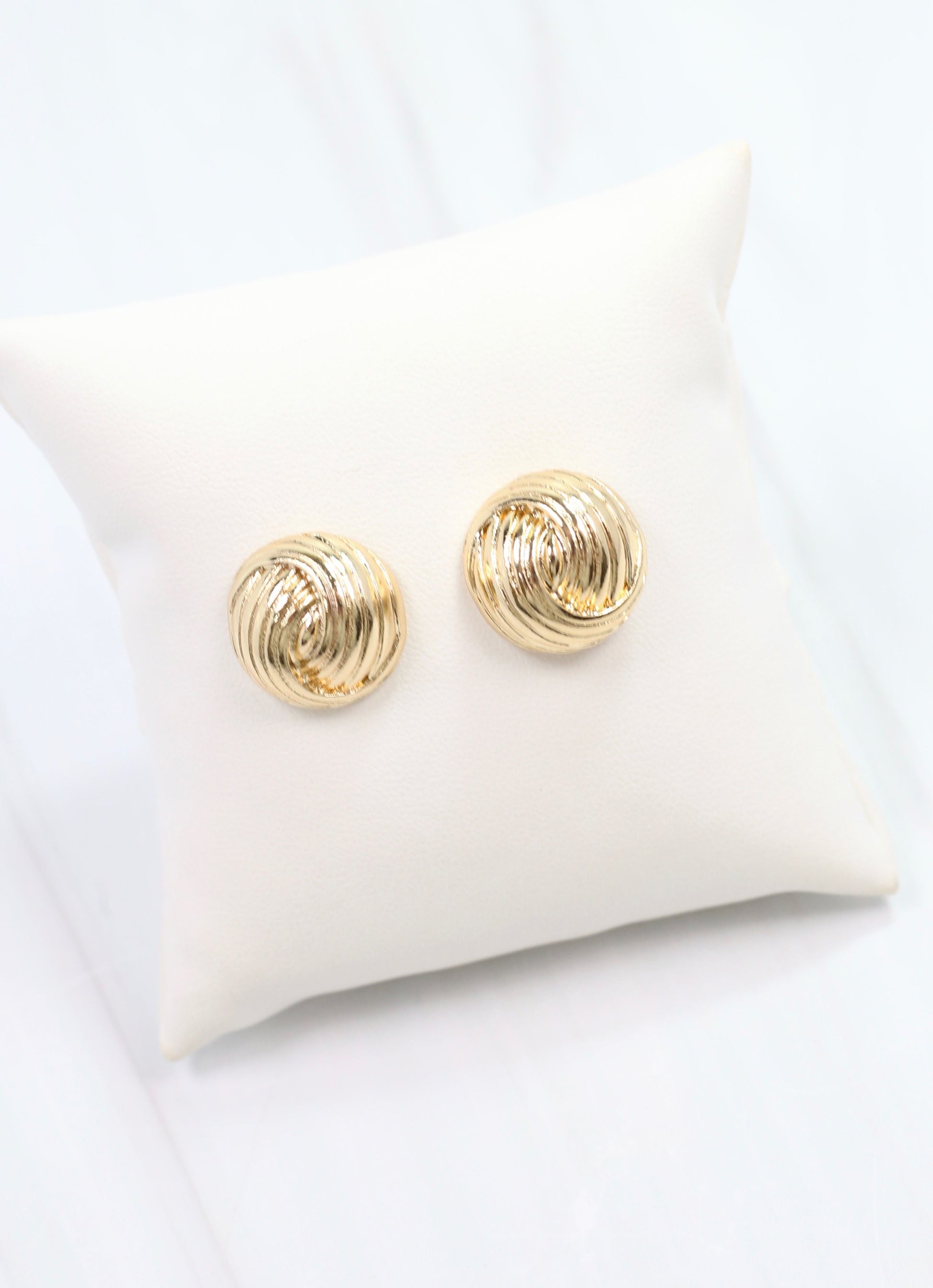 This button style stud earring has a textured design on a post back. It has a timeless style to match any outfit for any occasion.