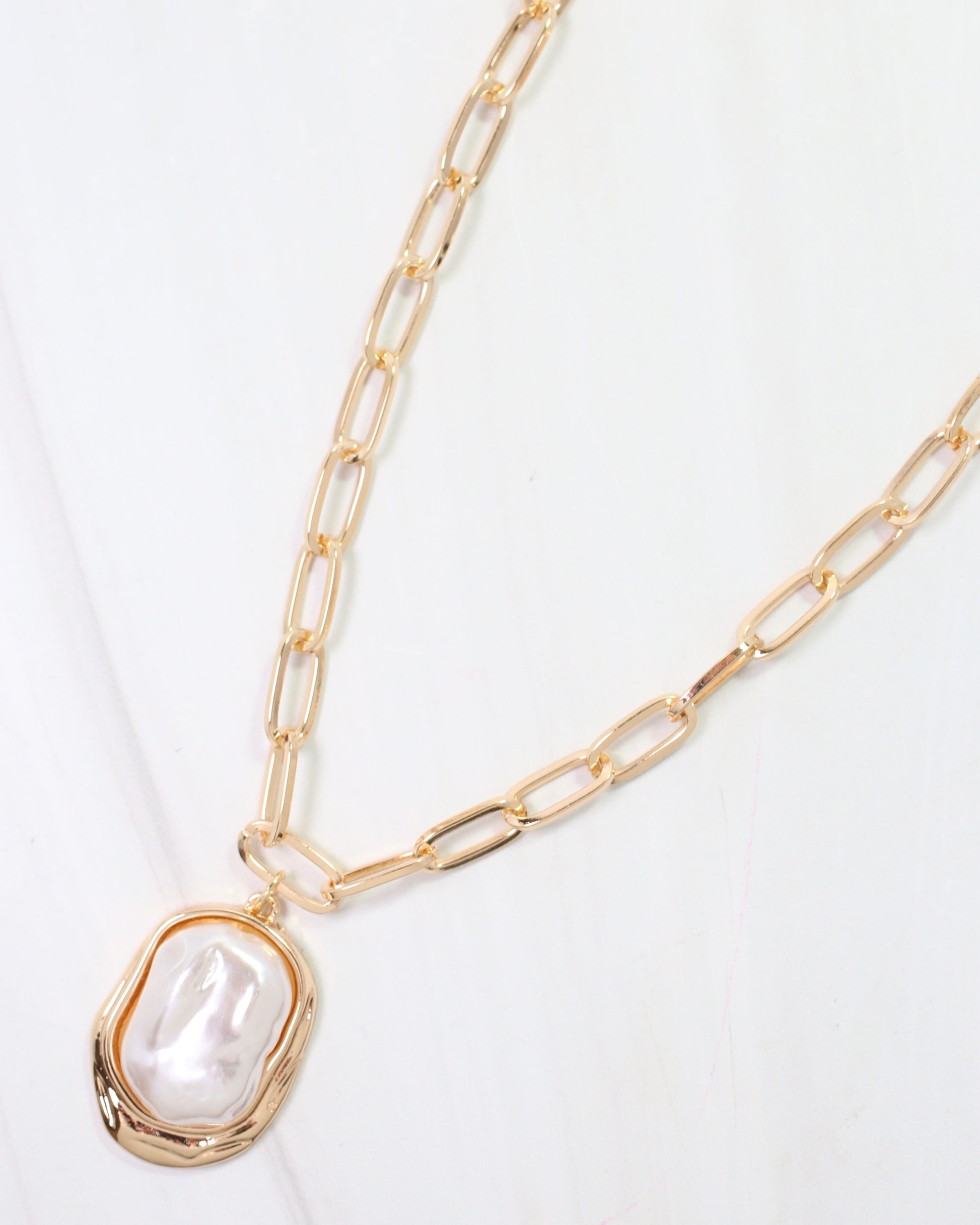 Add a touch of elegance and playfulness to any outfit with the Collinsville Pearl Pendant Necklace. Featuring a lustrous pearl suspended from a chic gold link chain, this necklace effortlessly blends classic beauty with modern style. Perfect for layering or worn alone, it’s your go-to accessory for a fashionable, fun look that shines day or night.