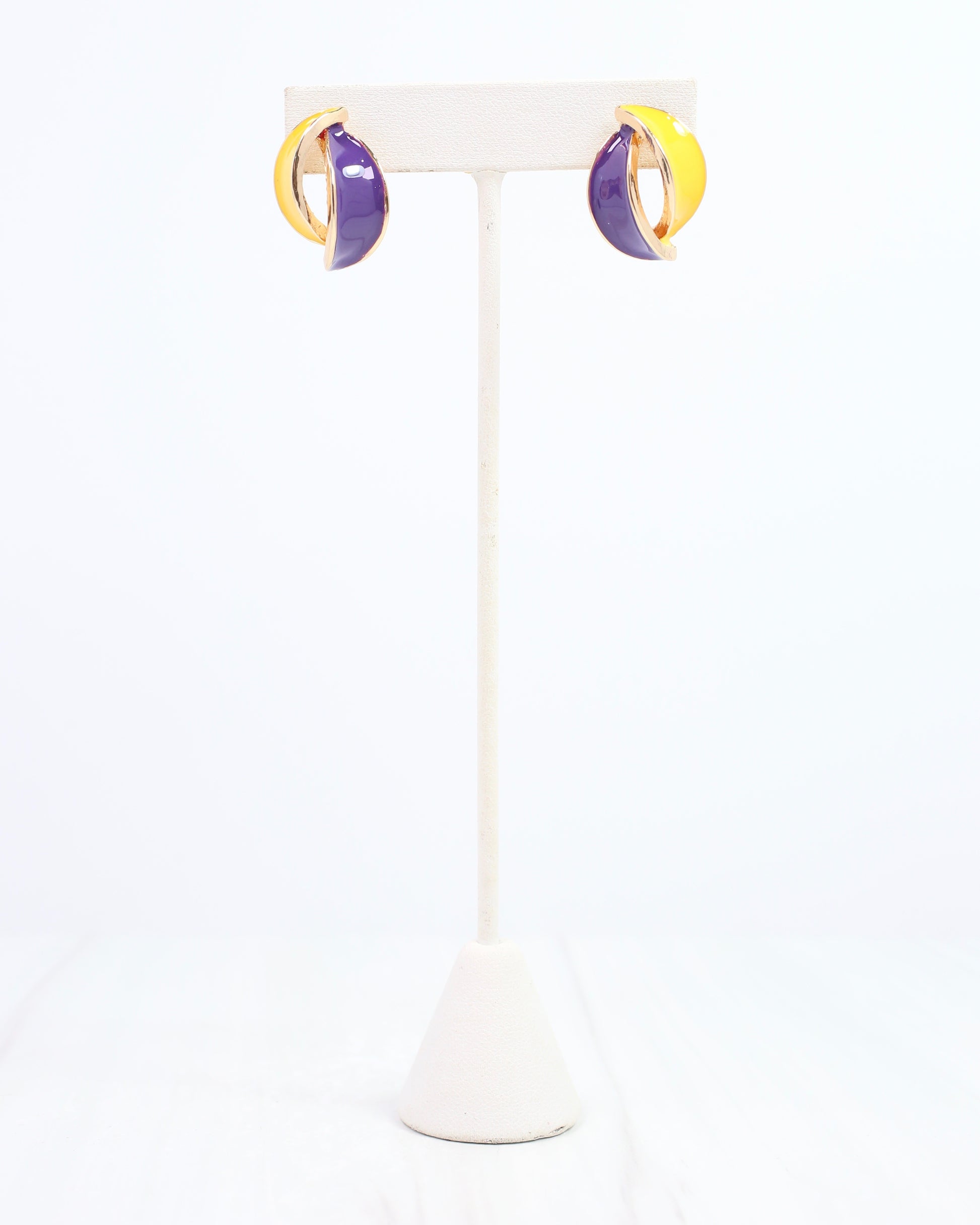 Add a pop of team spirit with the Cora Game Day Earring in purple and yellow. These charming two-tone studs feature two enamel strips that curve together, creating a playful and eye-catching look perfect for cheering on your favorite team or adding a fun touch to any outfit. Lightweight and vibrant, they’re the perfect accessory to show your game day pride with style.