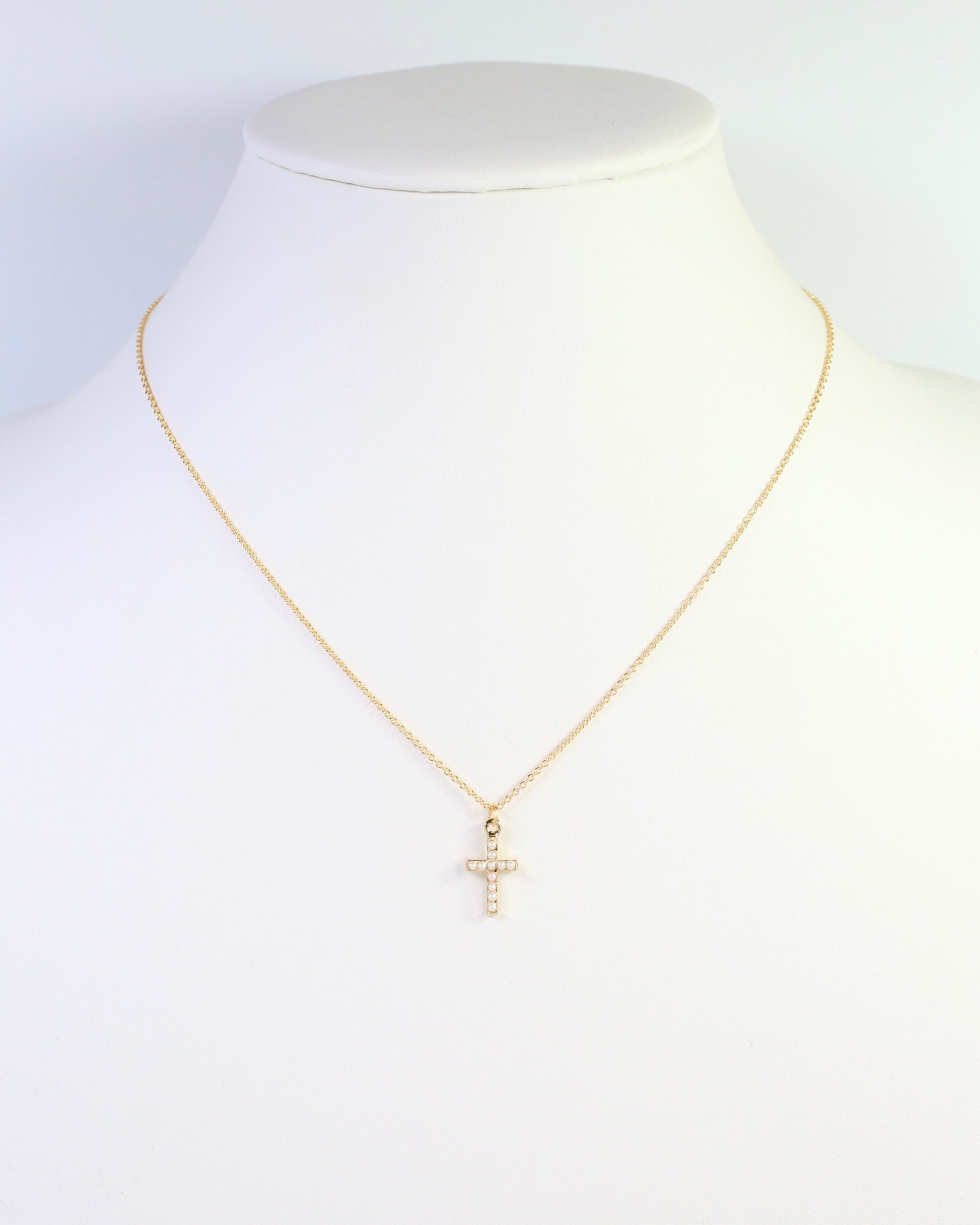Add a touch of timeless elegance with the Corinth Pearl Cross Necklace in gold. This charming piece pairs a lustrous pearl with a delicate cross pendant for a look that's both graceful and meaningful. Whether you're dressing up or keeping it casual, this versatile necklace brings sophistication and subtle sparkle to your everyday style. A go-to accessory that never goes out of fashion.