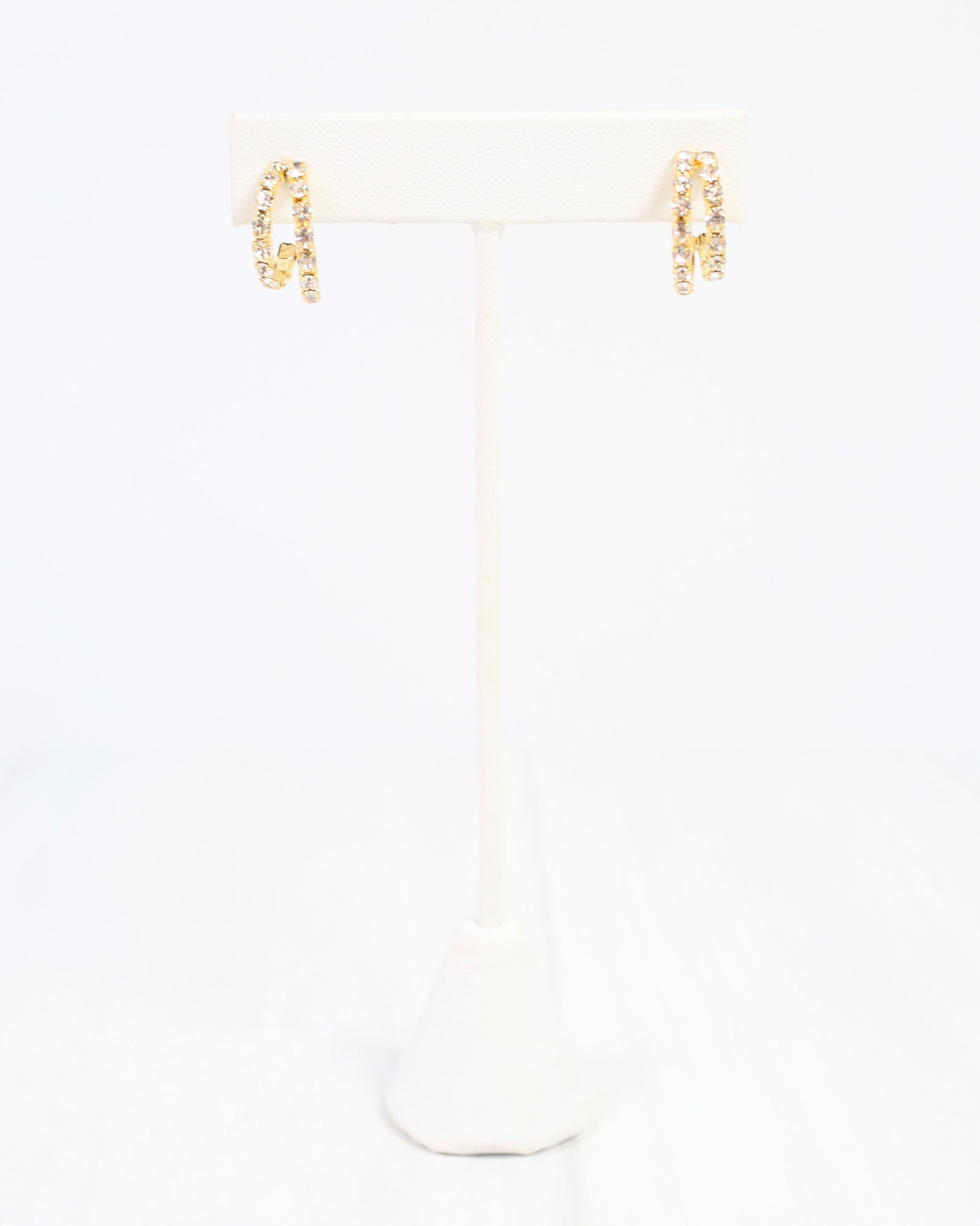 Elevate your style with the Crystal Rounded Double Hoop in Gold. Featuring two intertwined hoops adorned with shimmering cubic zirconia, these earrings catch the light beautifully for a sparkling, polished look. Perfect for adding a touch of glamour to any outfit, they combine timeless elegance with modern shine.