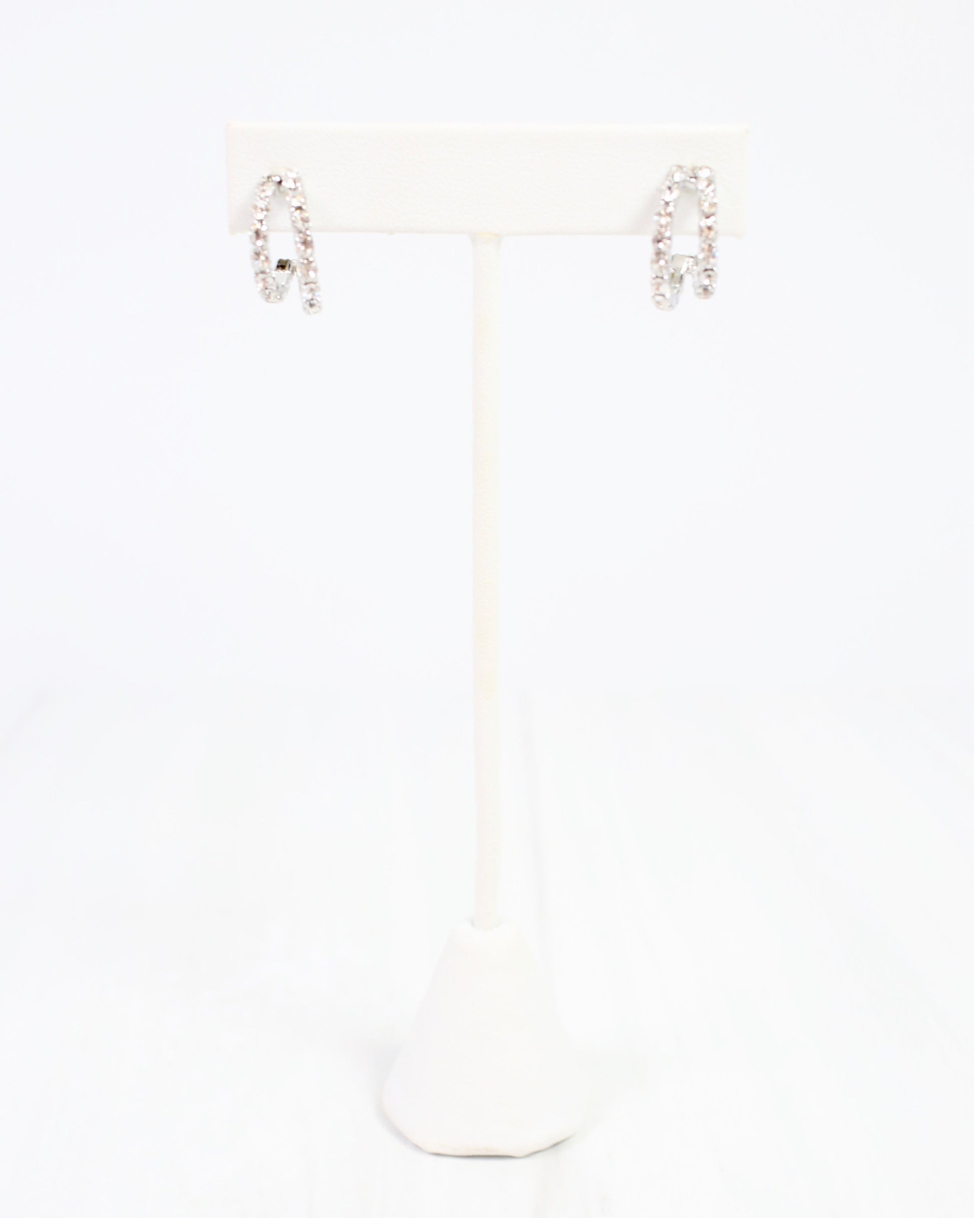 Elevate your style with the Crystal Rounded Double Hoop in Silver. Featuring two intertwined hoops adorned with shimmering cubic zirconia, these earrings catch the light beautifully for a sparkling, polished look. Perfect for adding a touch of glamour to any outfit, they combine timeless elegance with modern shine.
