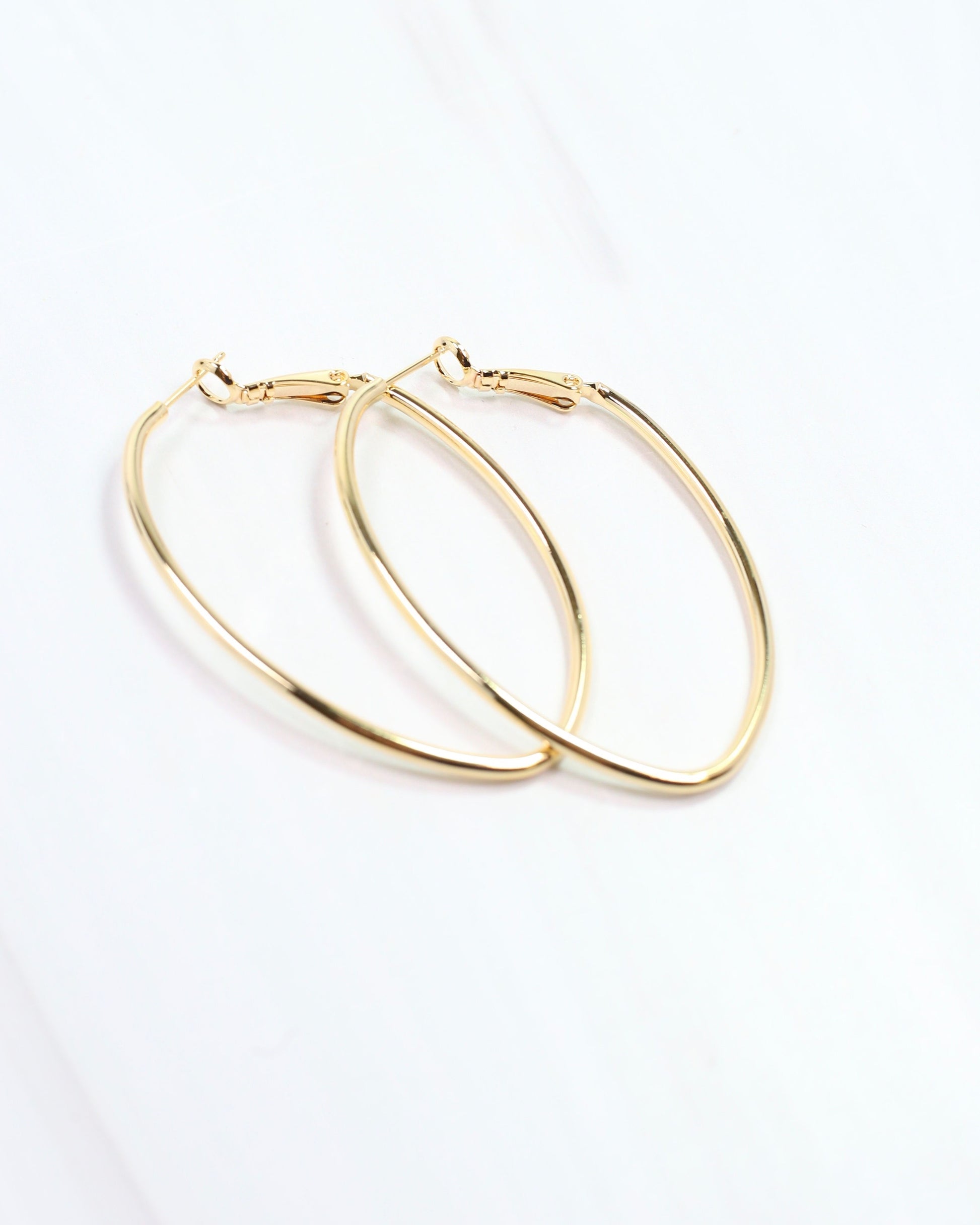 Brighten your look with the Daniiella Oval Hoop Gold! These shiny, thin oval hoops are crafted from brass and dipped in gold for a radiant finish. The secure latch back closure keeps them comfortably in place while adding a fun, playful vibe to your style.