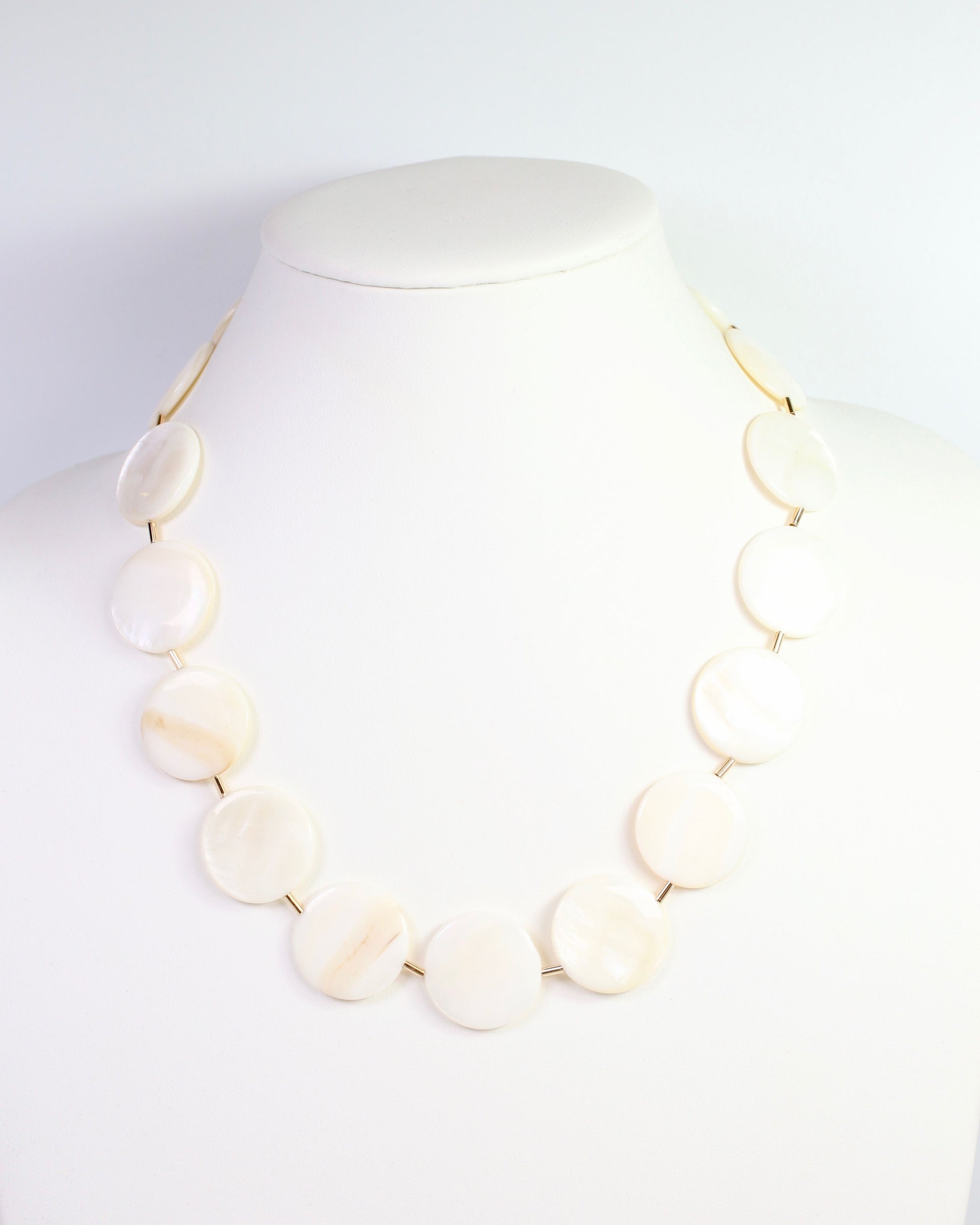 The Duxbury Shell Disc Necklace in ivory is a serene, nature-inspired piece that adds effortless elegance to any look. Its luminous shell pendant in soft ivory tones brings a breezy, coastal charm that works beautifully on its own or layered with other pieces. A versatile essential for those who appreciate understated, timeless style.