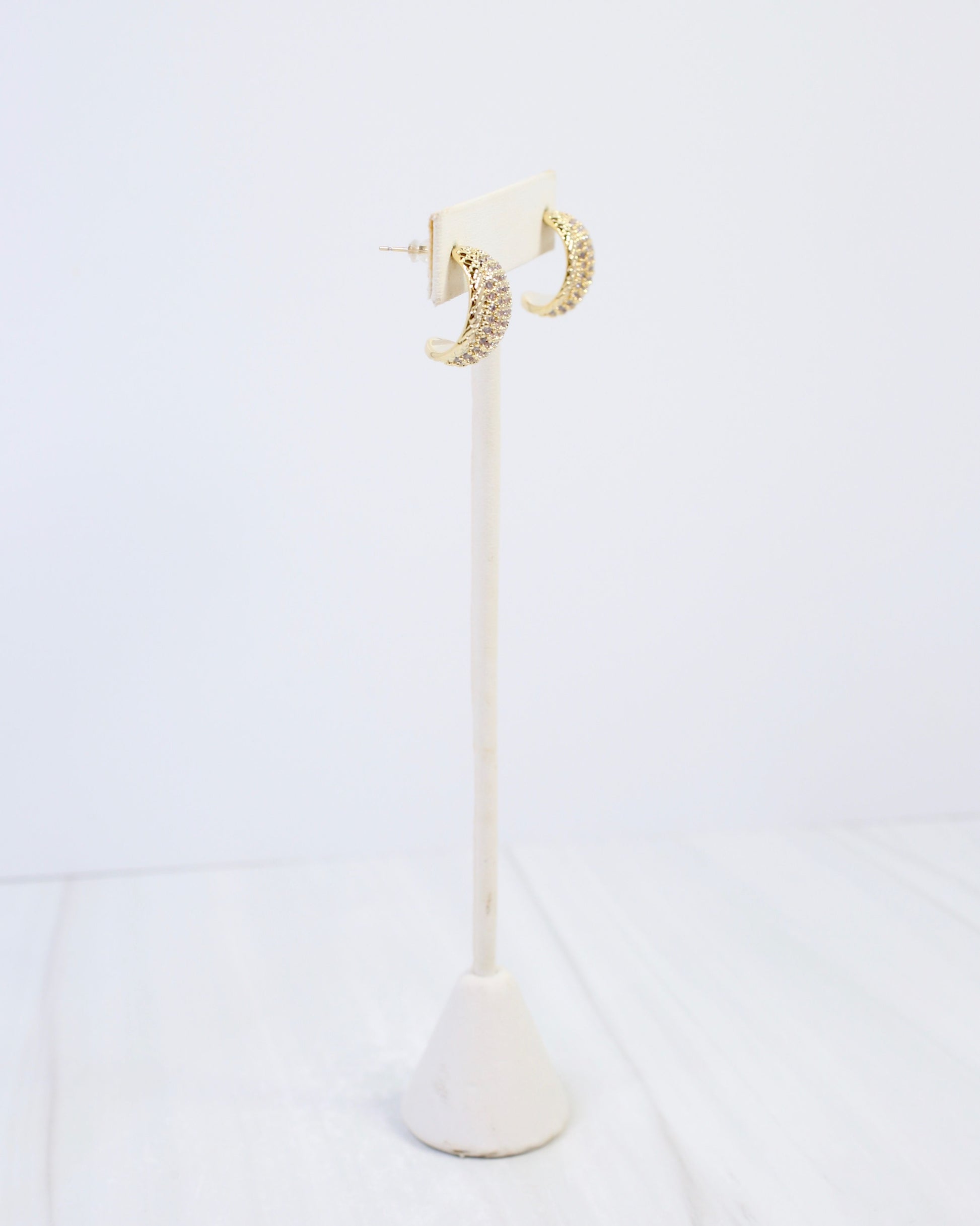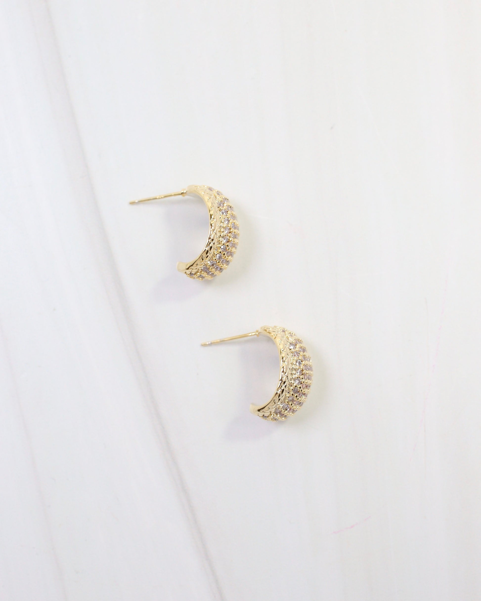 Captivate with the East Hampton Crystal Pave Earring in gold. These stunning studs feature shimmering crystals set in an intricate pavé design that sparkles from every angle. The perfect blend of glamour and wearability, they transition seamlessly from day to night with effortless style. Whether you're dressing up for a special occasion or adding sparkle to your everyday look, these earrings deliver that coveted "just enough" shimmer that turns heads.