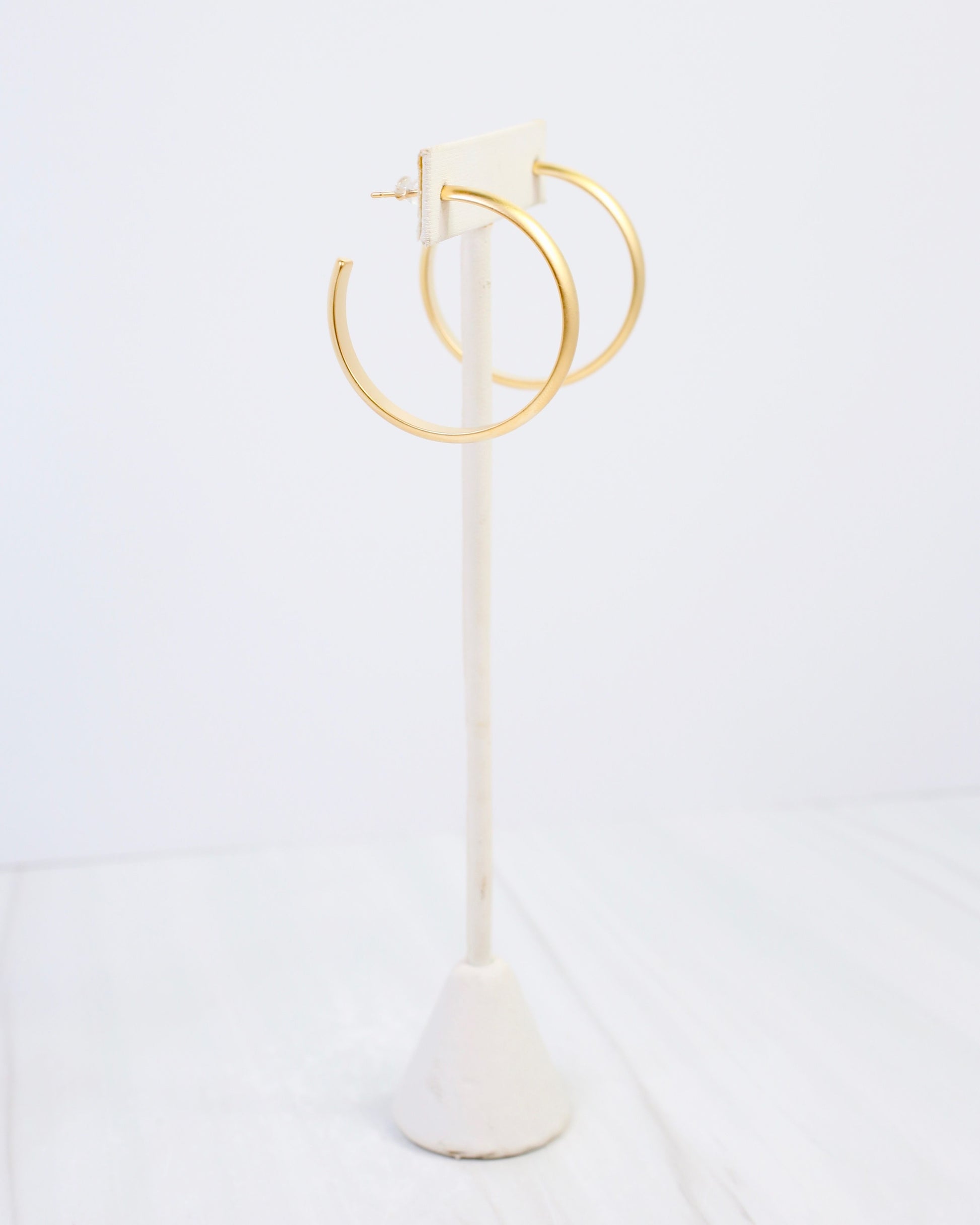 Make a refined statement with the Edison Hoop Earring in matte gold. The soft, understated finish offers a modern take on a classic silhouette, perfect for those who prefer subtle elegance over high shine. Lightweight and comfortable for all-day wear, these versatile hoops complement any style—from minimalist to maximalist. Effortless sophistication in every wear.