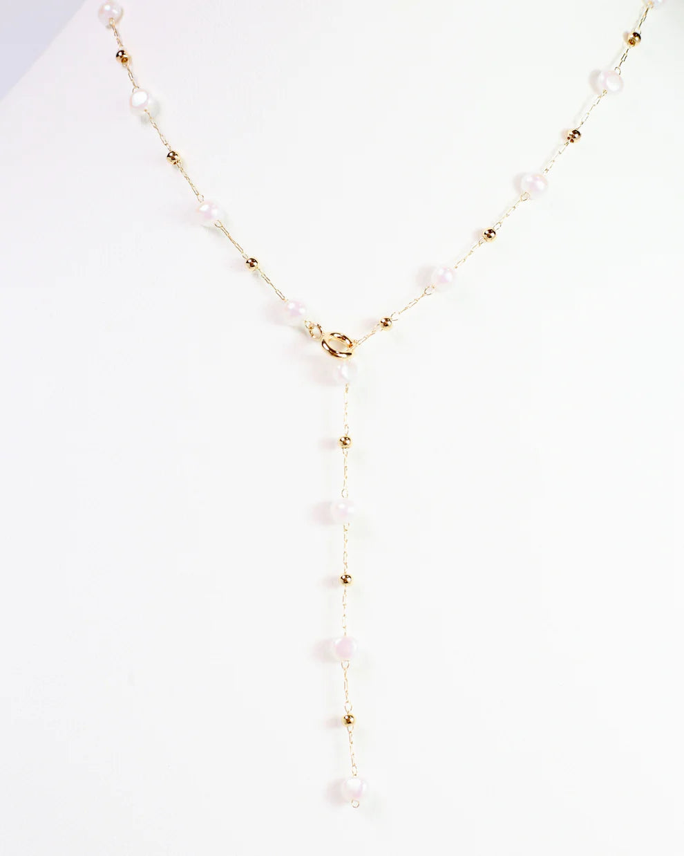 Add to your style effortlessly with the Elise Pearl and Gold Y-necklace. Featuring delicate gold beads, stationary pearls, adjustable up to 16.5", and a versatile clasp, it’s perfect for any outfit. Wear it your way—front or back—for timeless elegance that’s always in fashion!