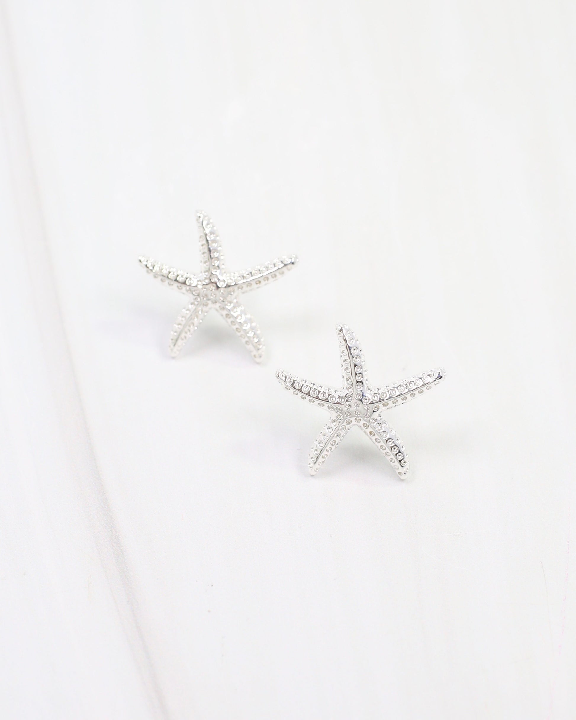 The Elyria Starfish Post Earrings in silver feature a delicate starfish design with comfortable post styling. Polished and versatile, they bring whimsical seaside charm to any wardrobe.