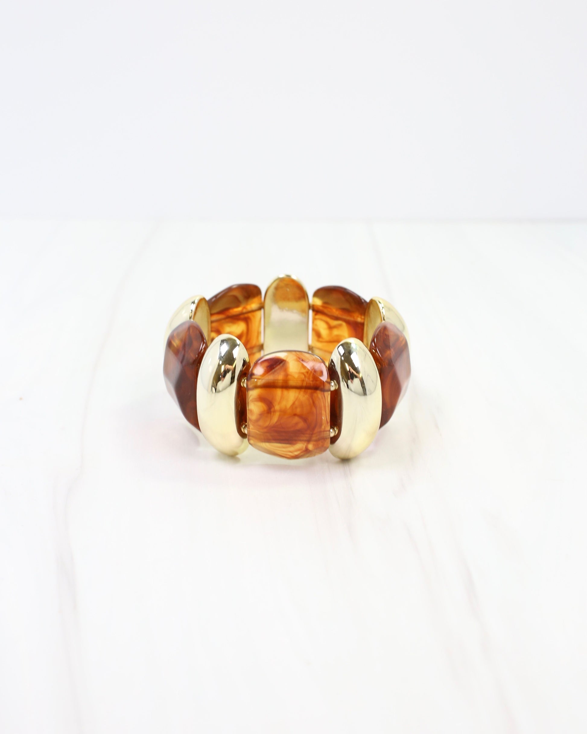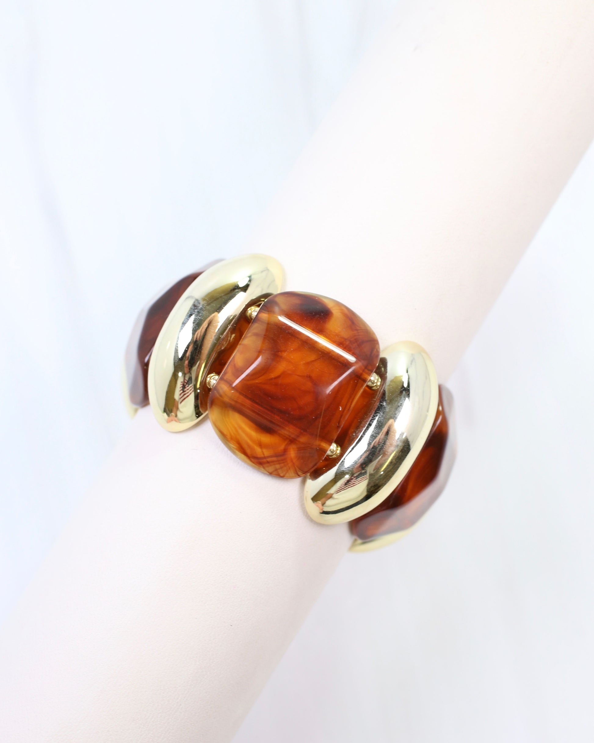 The Emporia Stretch Bracelet Tortoise features a refined blend of tortoise-patterned and gold beads, strung on a flexible stretch band for an elegant yet comfortable fit. Its timeless design adds a subtle touch of sophistication to any outfit.