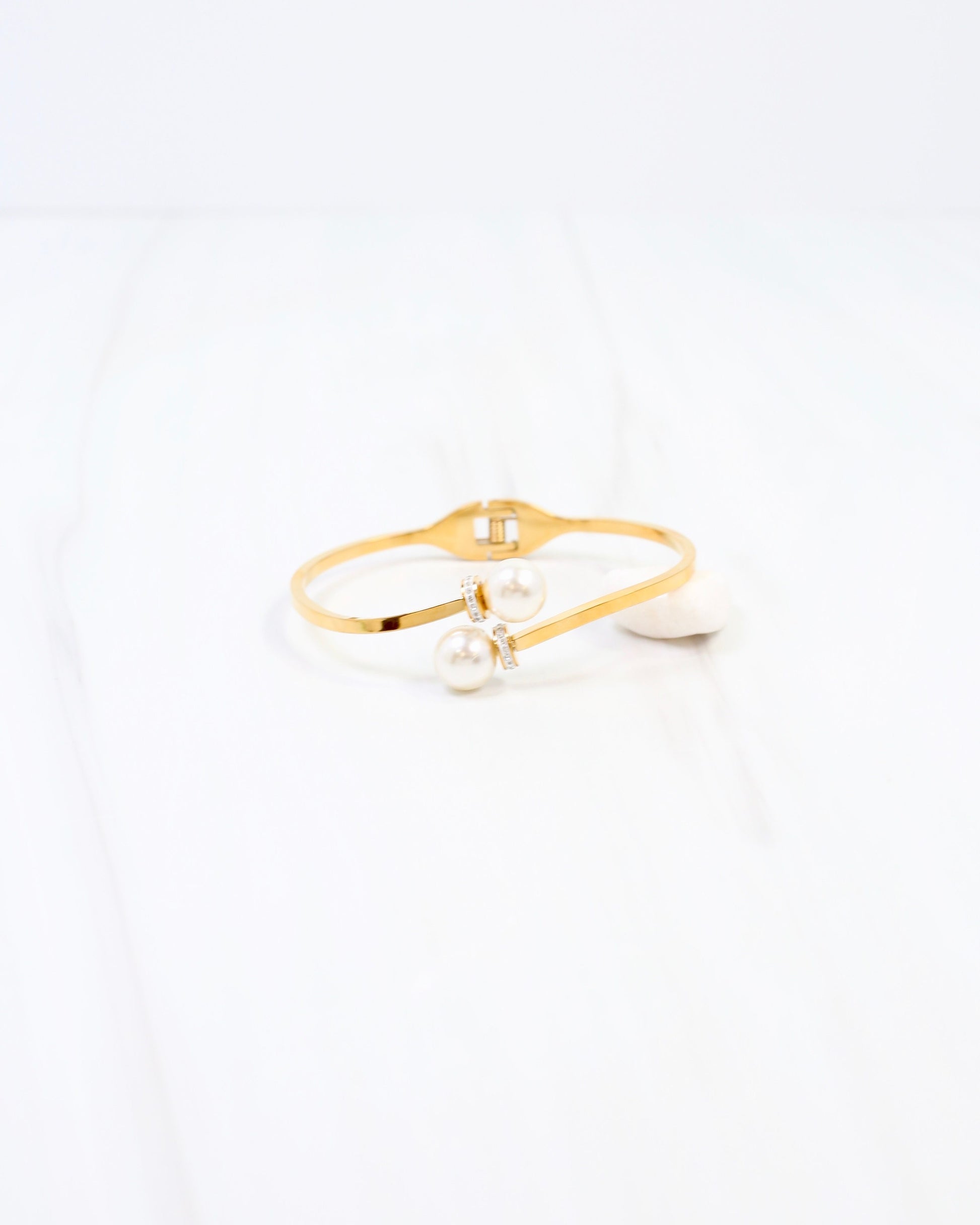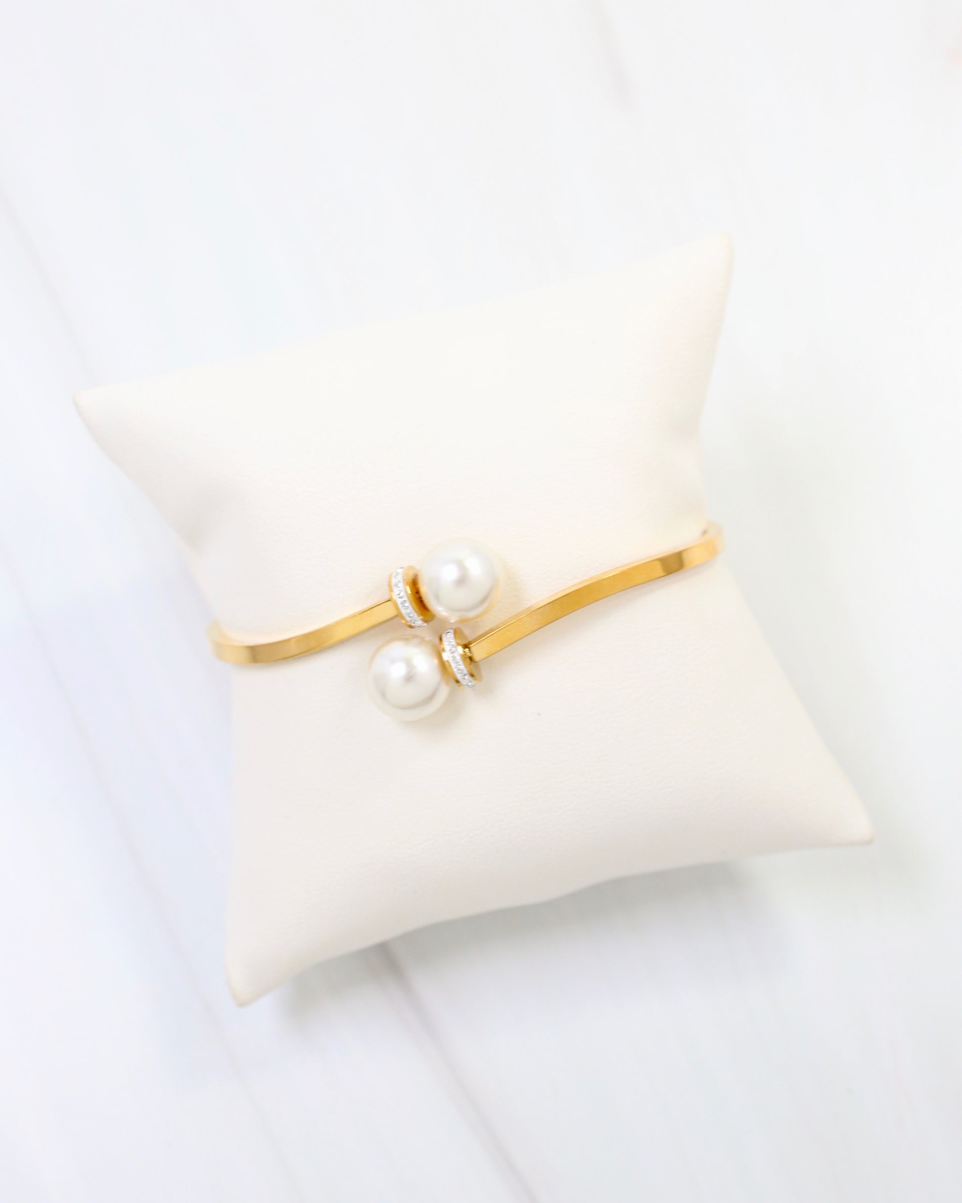 Timeless elegance defines the Everett Pearl Hinged Bracelet in gleaming gold. Lustrous pearls are beautifully showcased along the bracelet's length, while the secure hinge closure keeps your piece perfectly positioned throughout the day. The warm gold finish adds a touch of luxury to any occasion, from casual gatherings to special events. A refined accessory that never goes out of style.