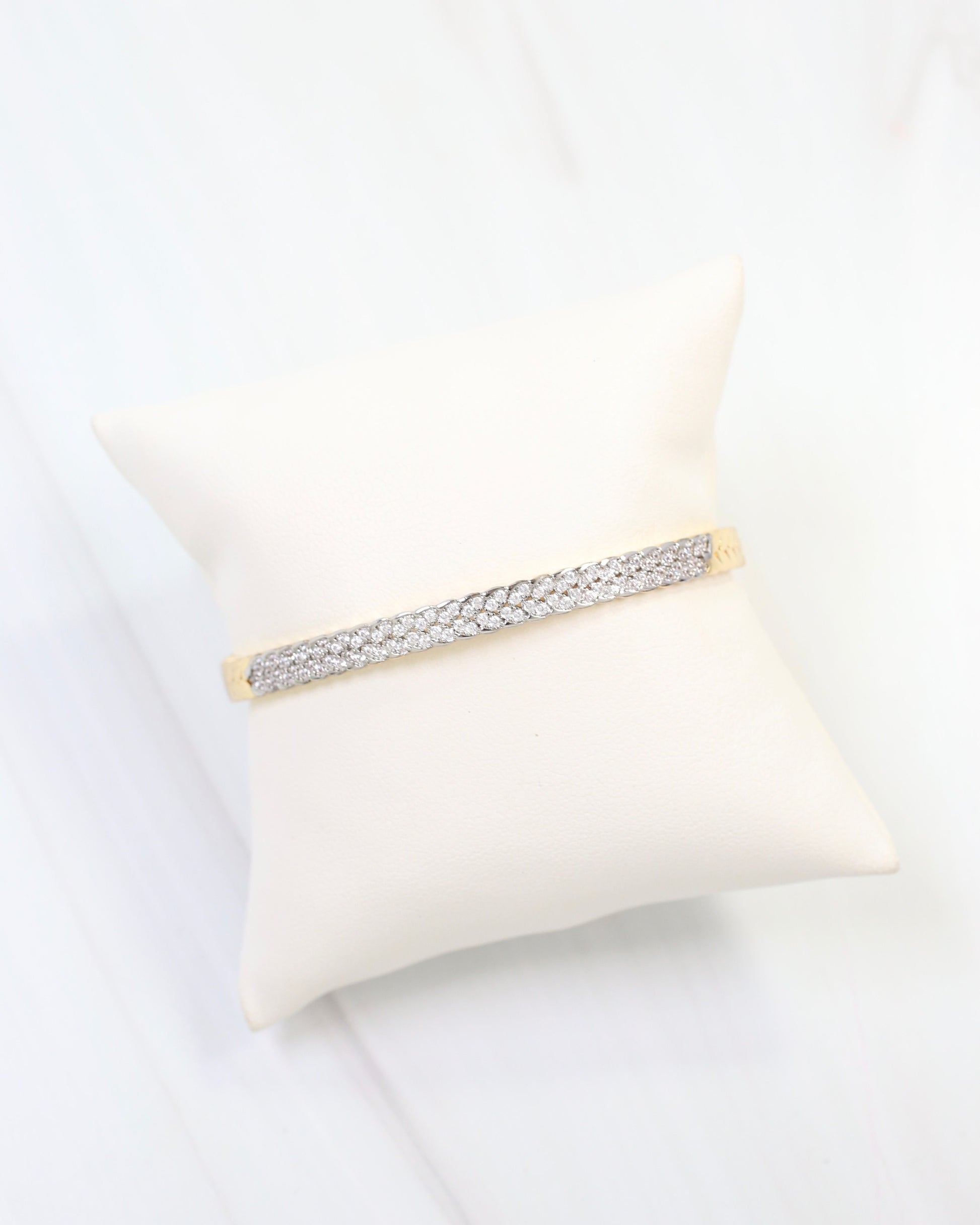 Sparkle with confidence in the Fitchburg CZ Pave Bracelet. Cubic zirconia stones set in a luxurious gold pavé design create brilliant shimmer that elevates any look with understated glamour.