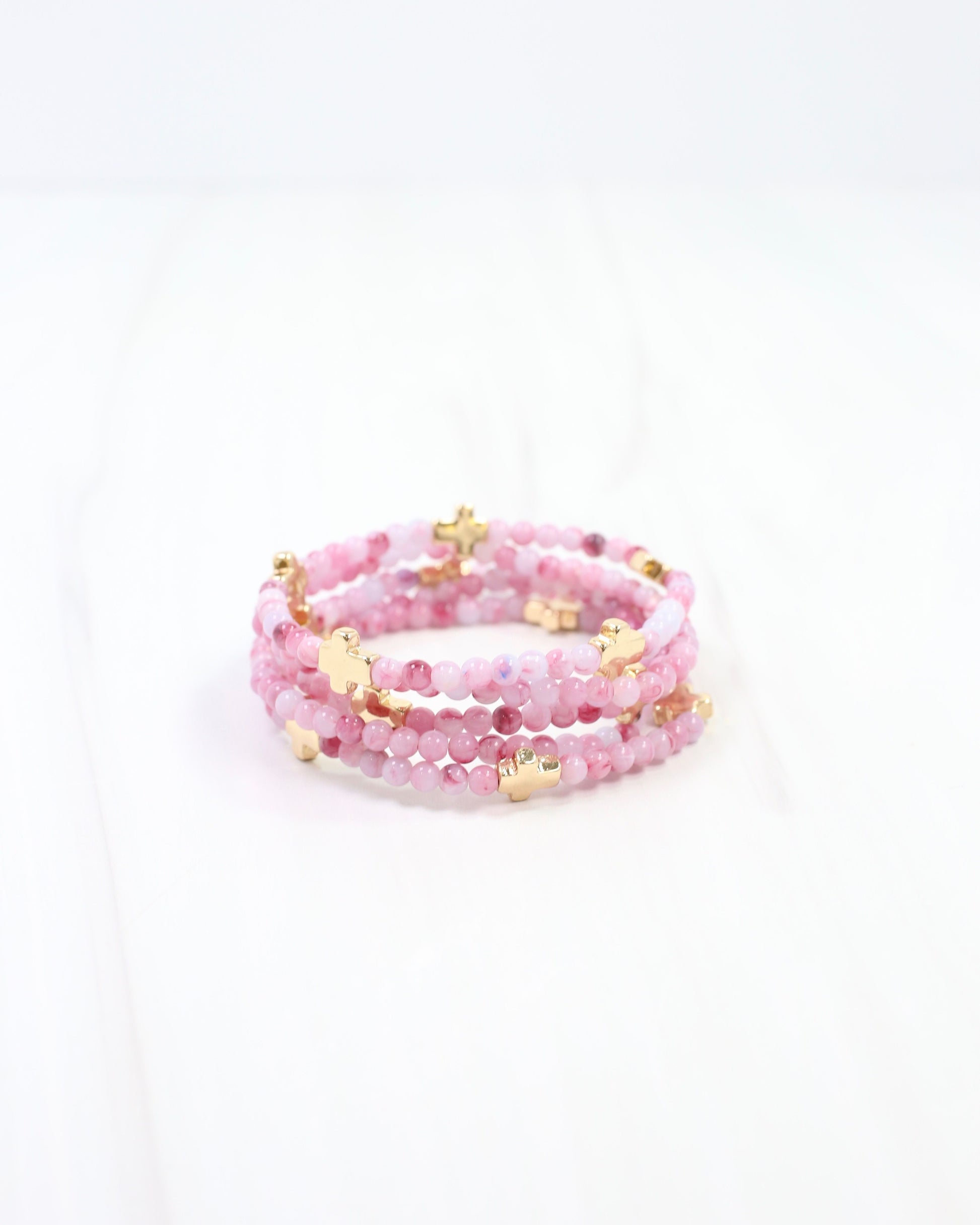 Flint Beaded Cross Stretch Bracelet Set Pink
