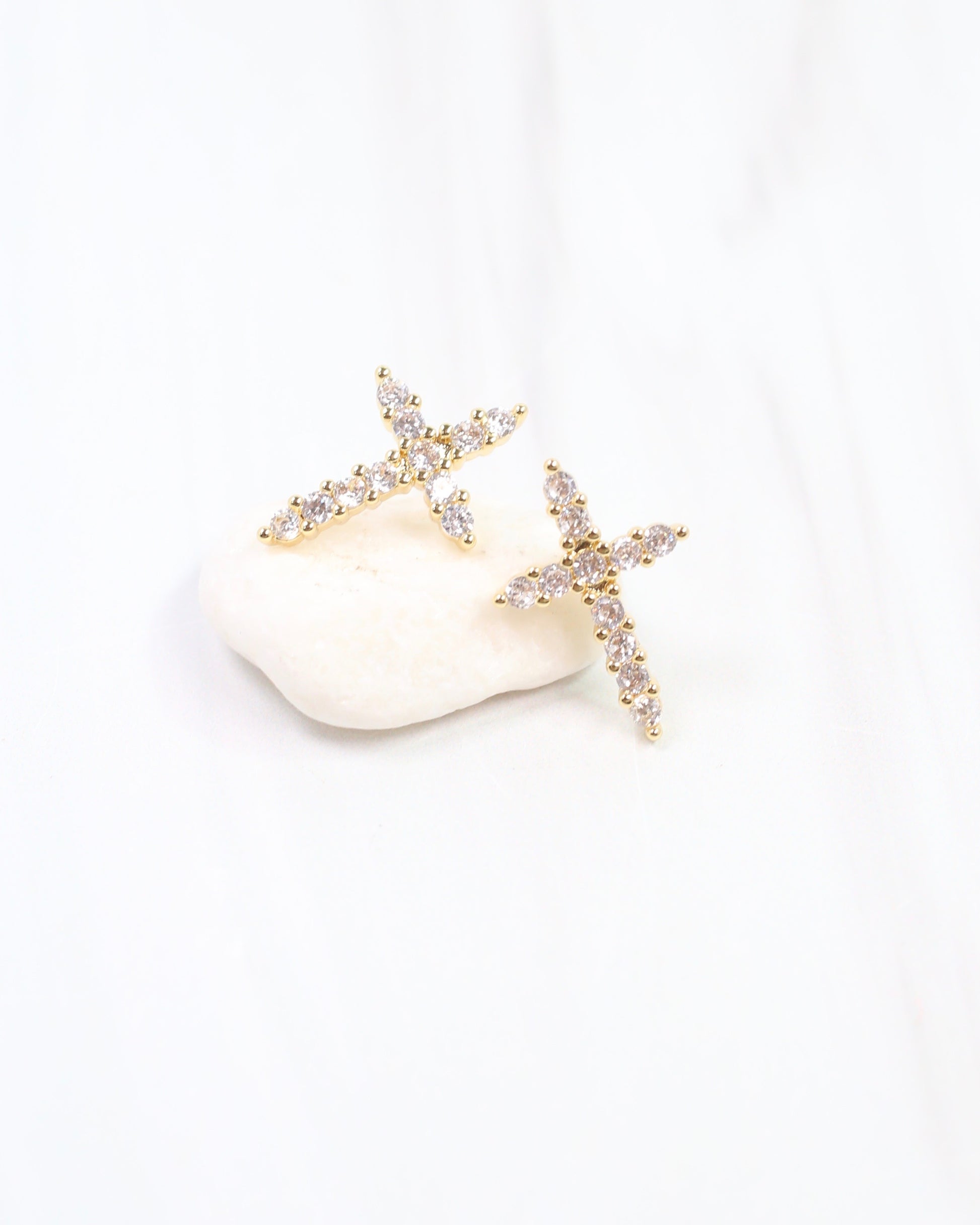 Florence CZ Cross Earring Gold
