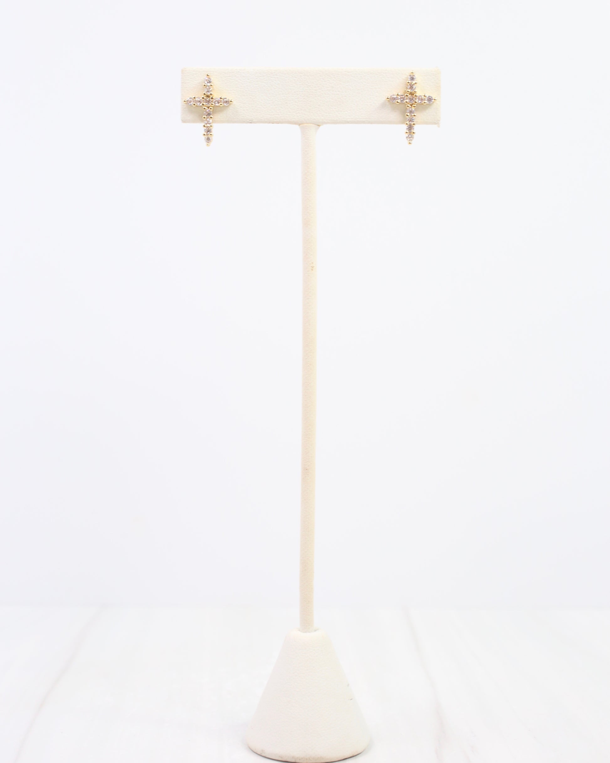 Elevate your everyday style with the Florence CZ Cross Earring in Gold. This finely crafted pave cross stud adds a subtle sparkle, making it the perfect accessory for daily wear. Its sleek design effortlessly complements any outfit, blending timeless elegance with modern fashion.