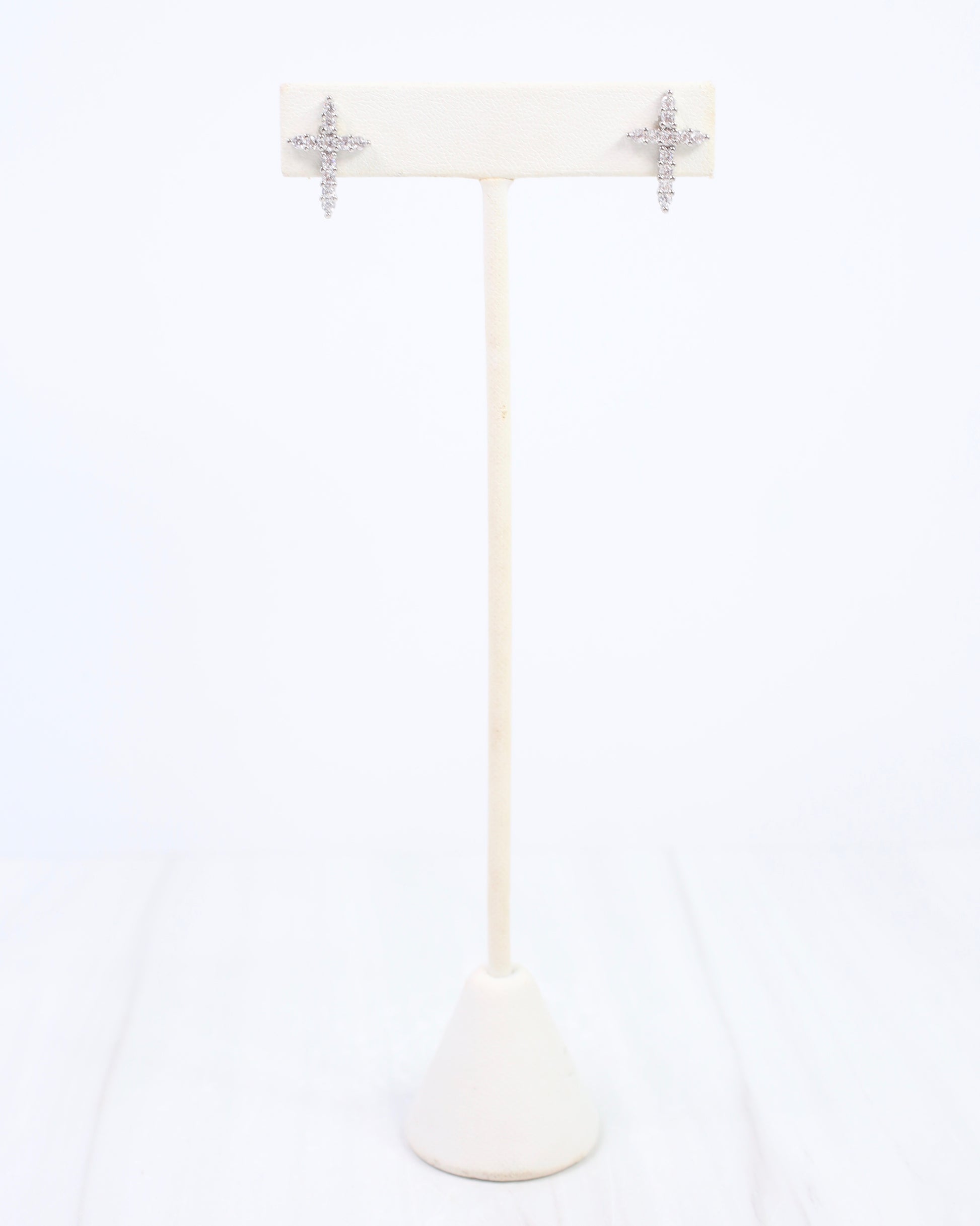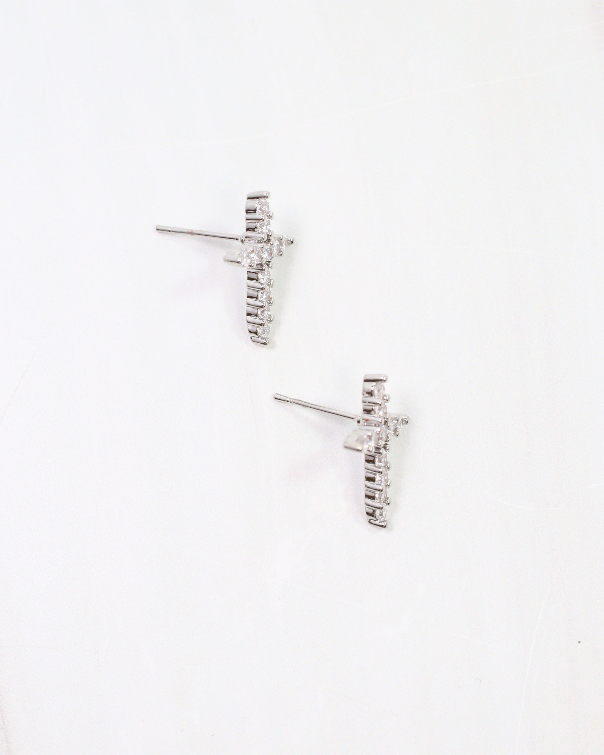 Elevate your everyday style with the Florence CZ Cross Earring in Silver. This finely crafted pave cross stud adds a subtle sparkle, making it the perfect accessory for daily wear. Its sleek design effortlessly complements any outfit, blending timeless elegance with modern fashion.
