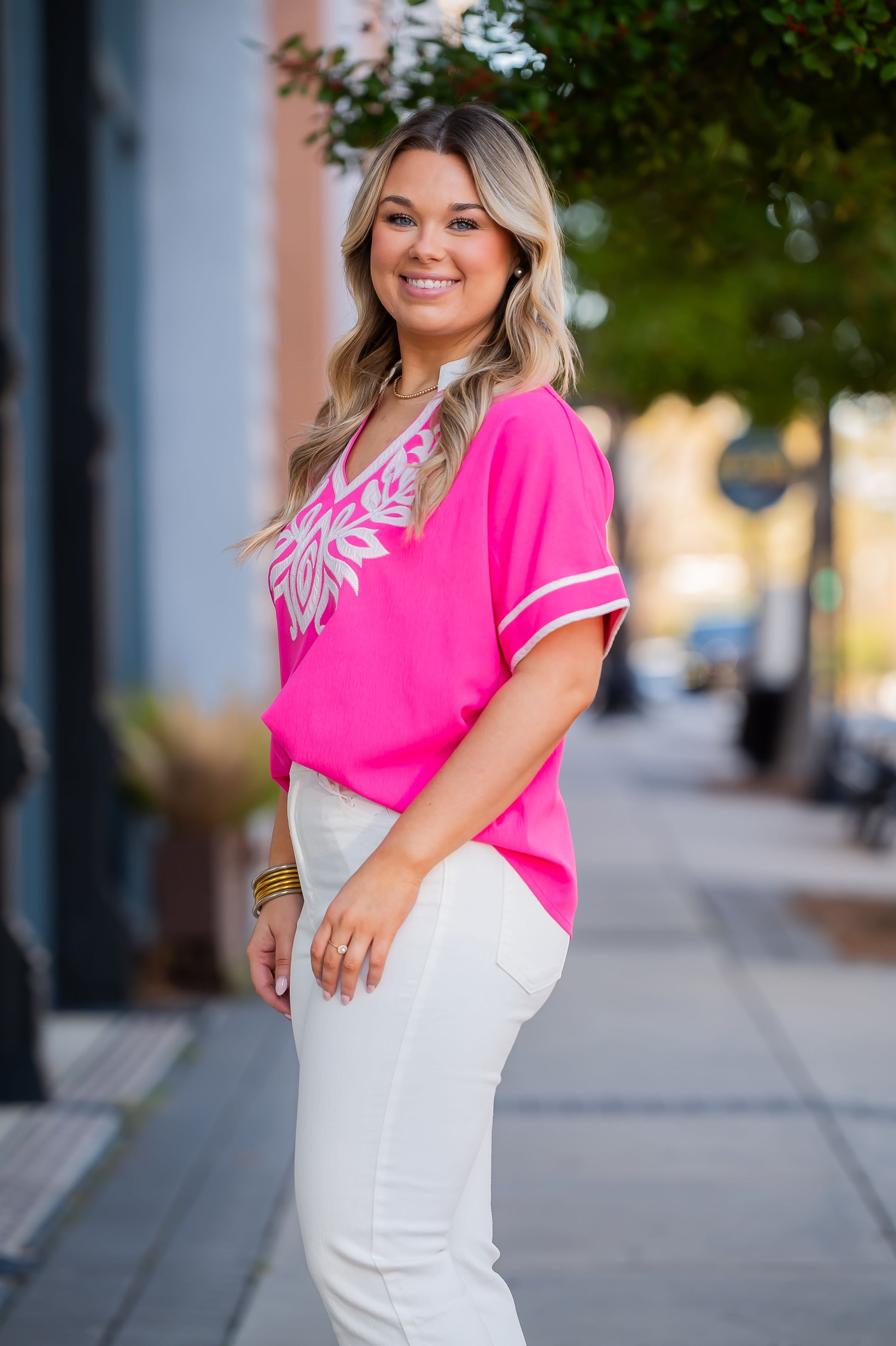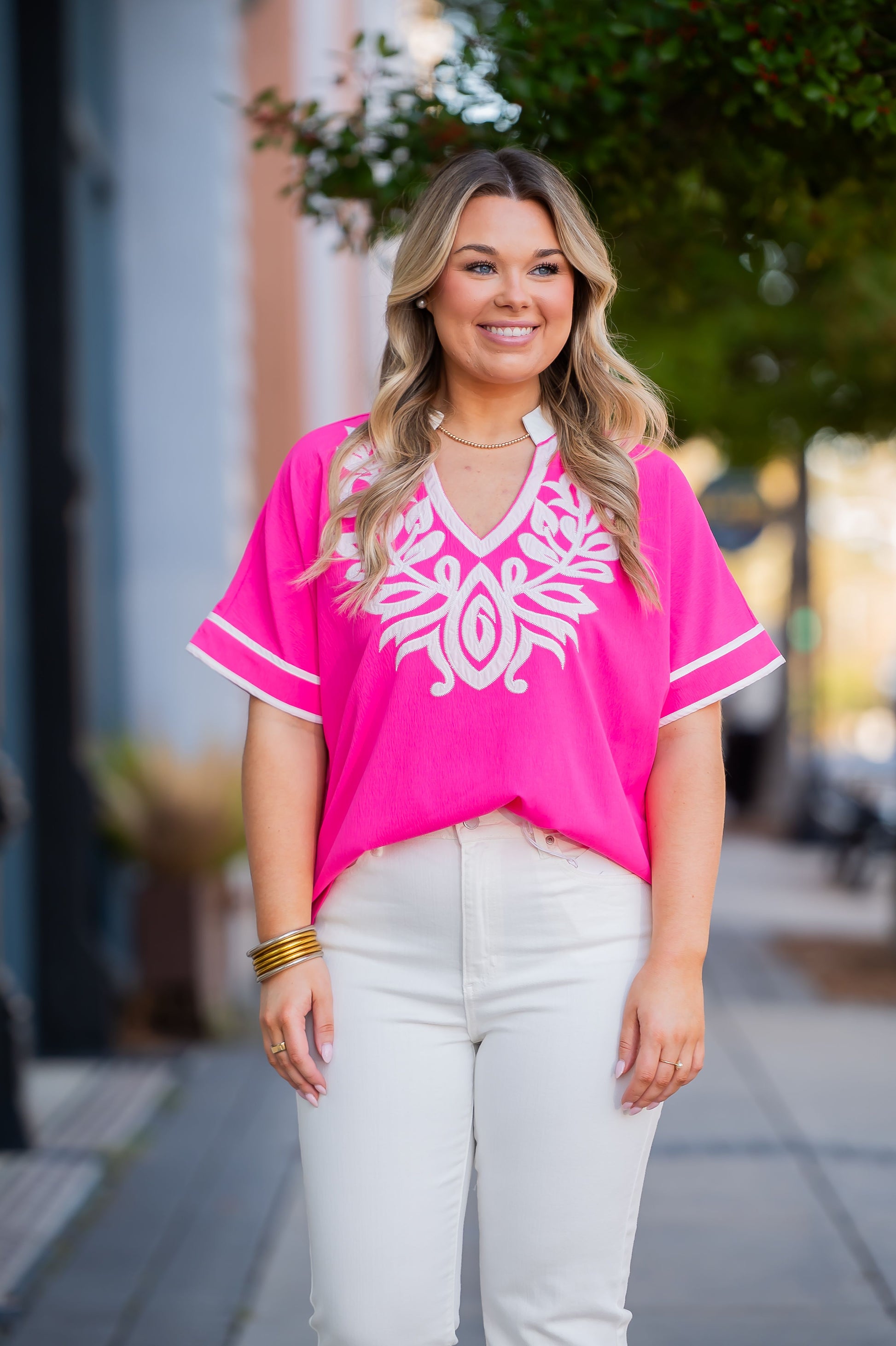 Florissant Embroidered Top-Hot Pink