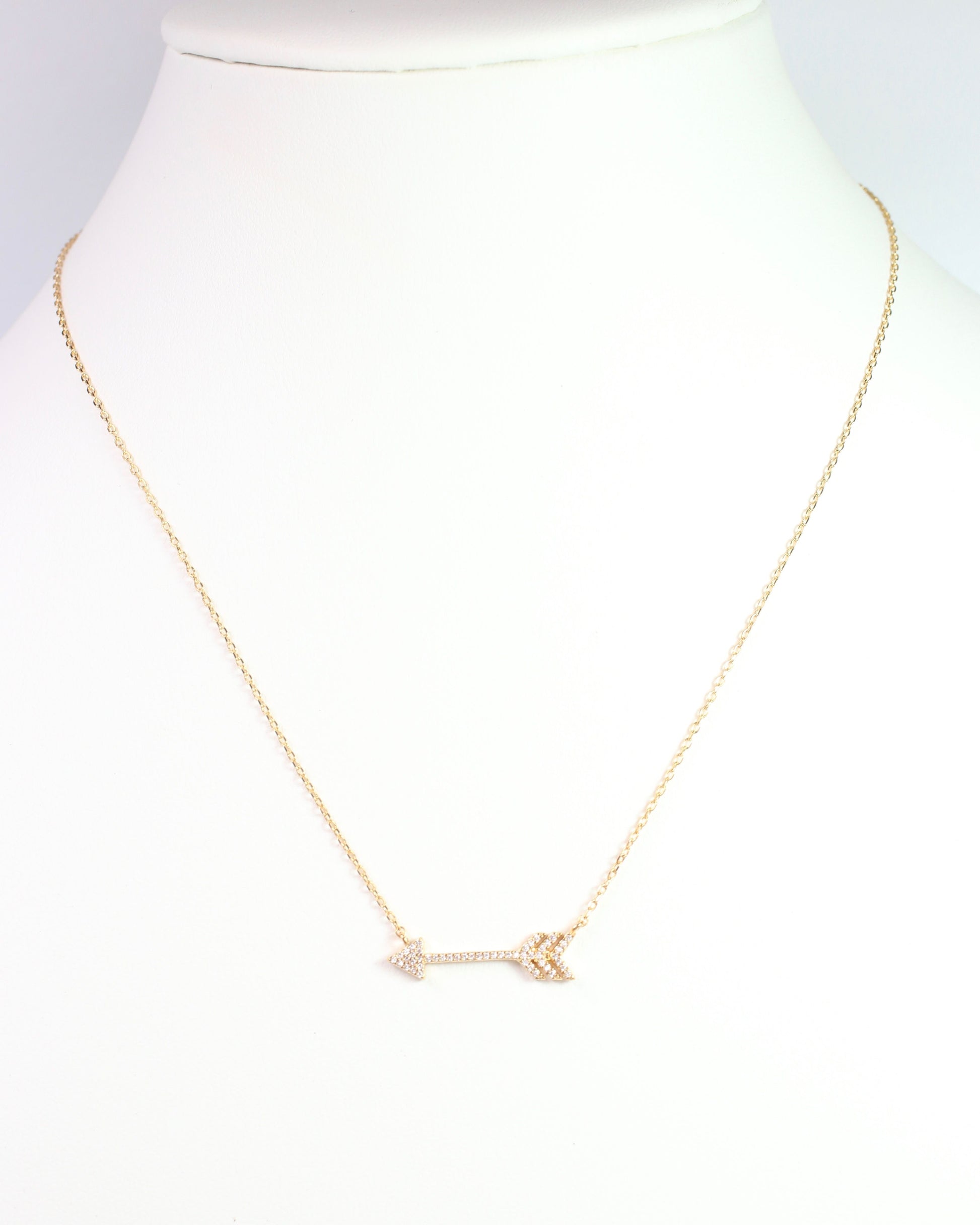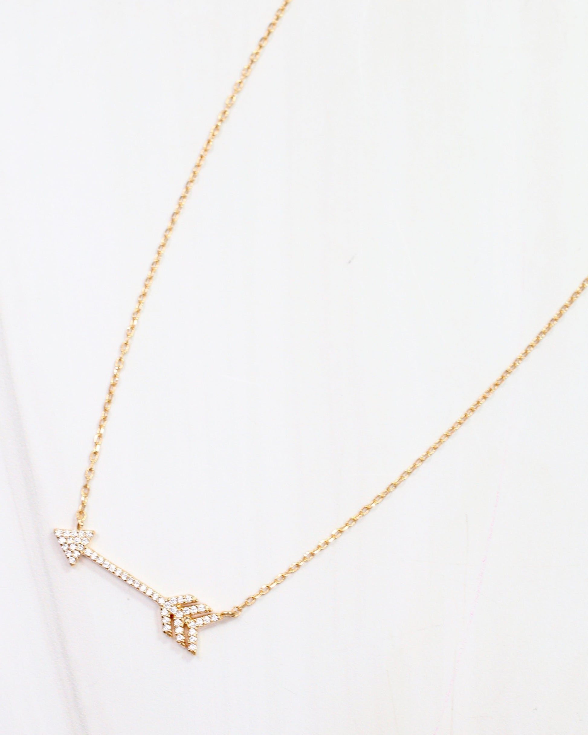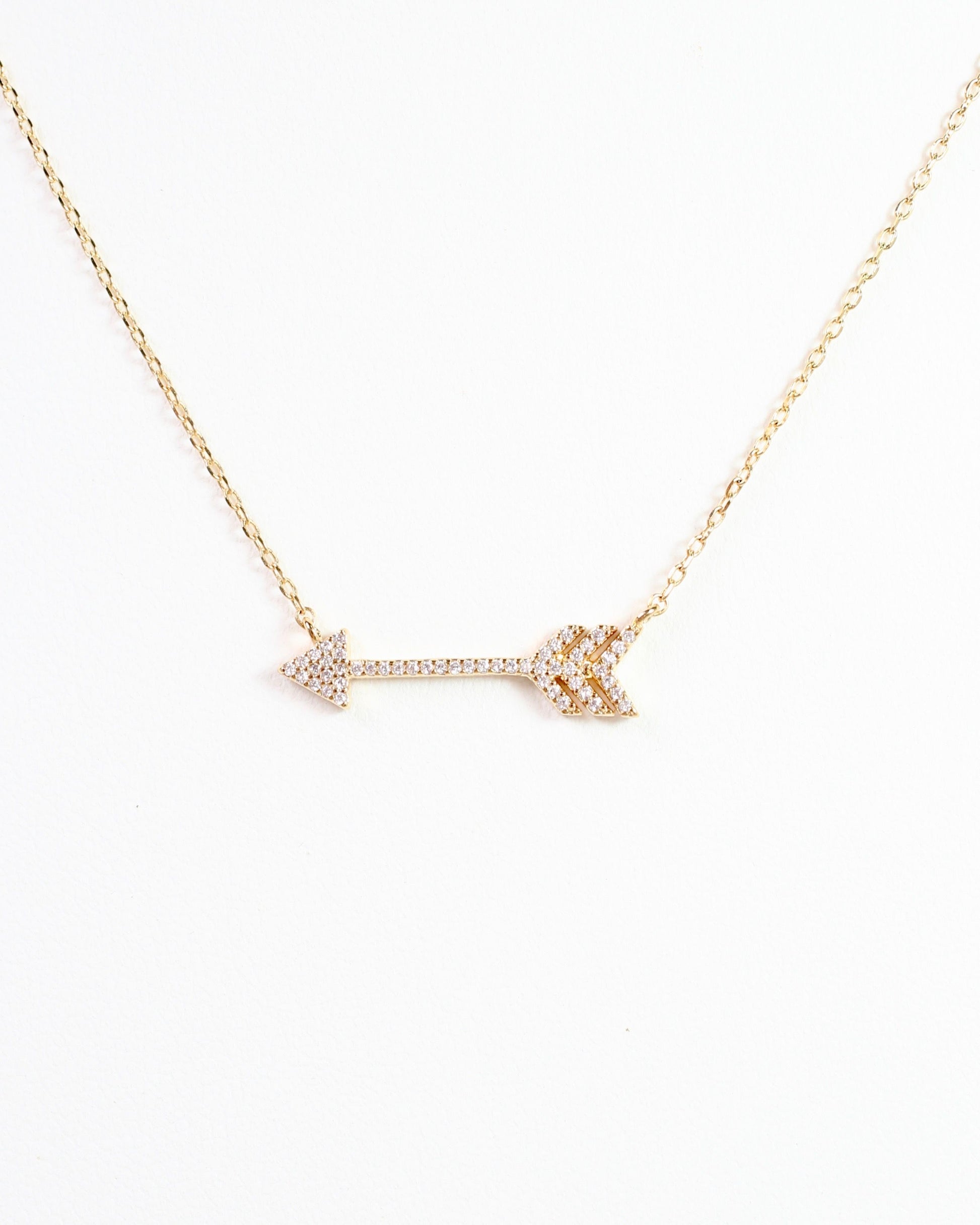 Stay sharp with the playful Focus & Keep Aim Arrow Necklace. A pave arrow on an 18K gold chain, perfect alone or layered for everyday sparkle.