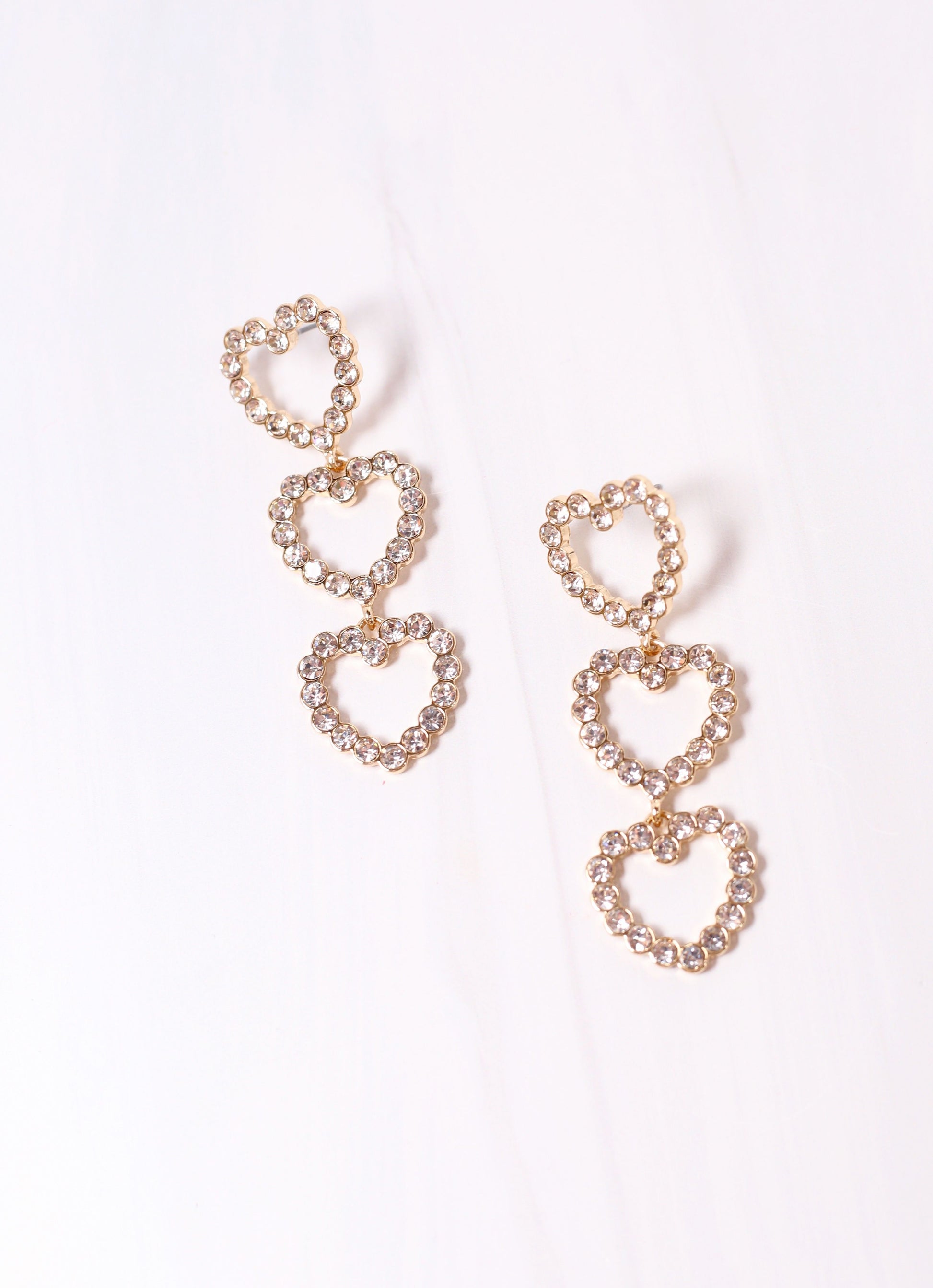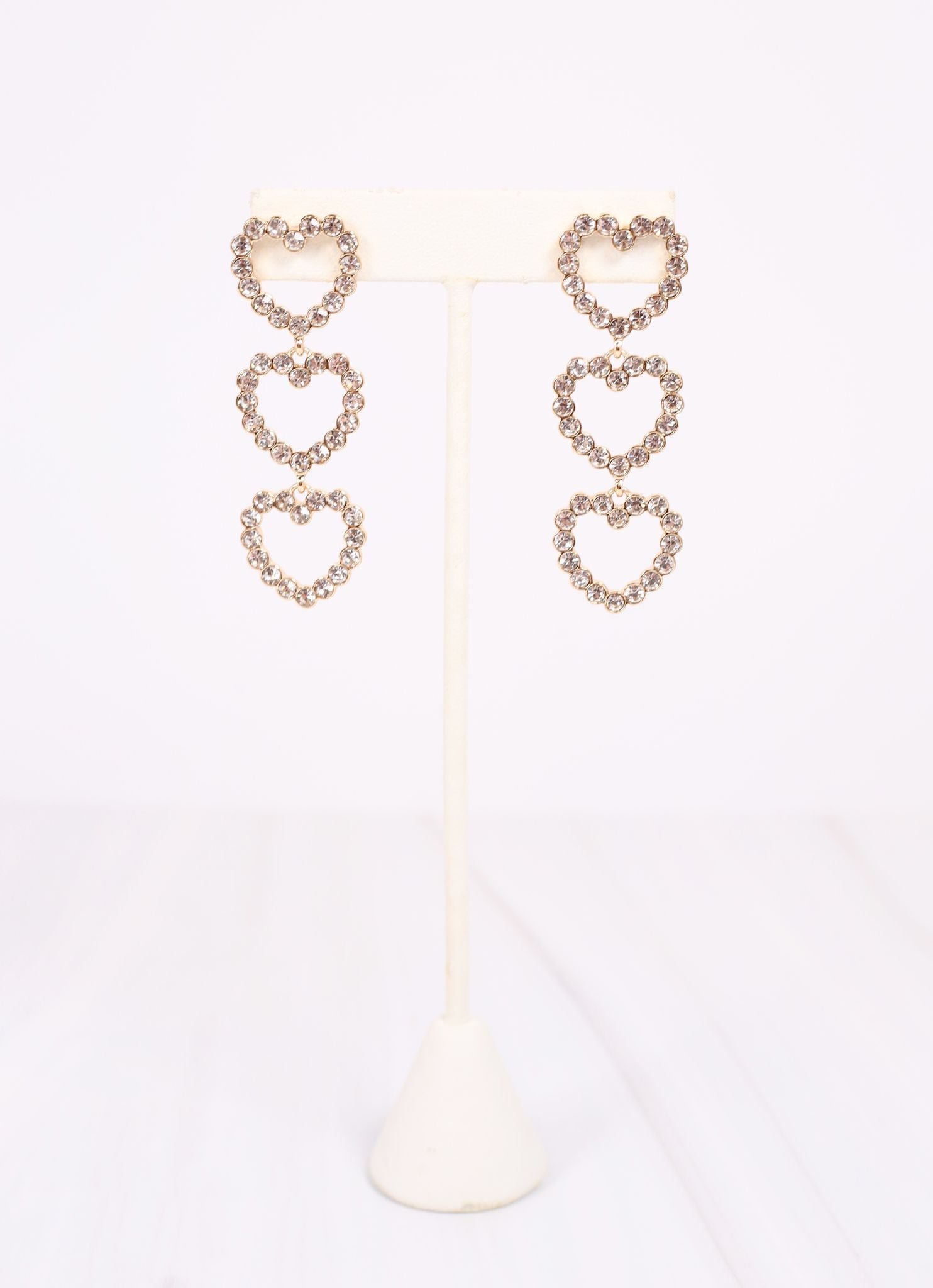 This metal earring has three open heart drops outlined in CZs on a post back. Great for just a tad of sparkle!