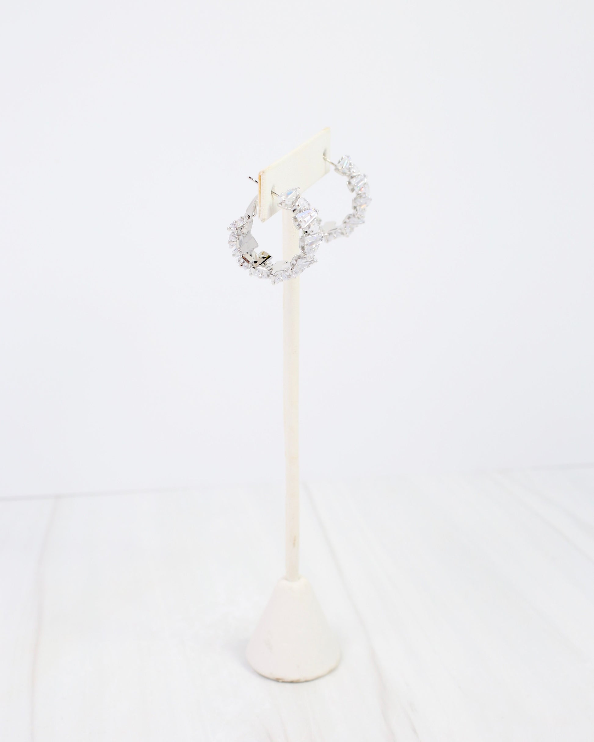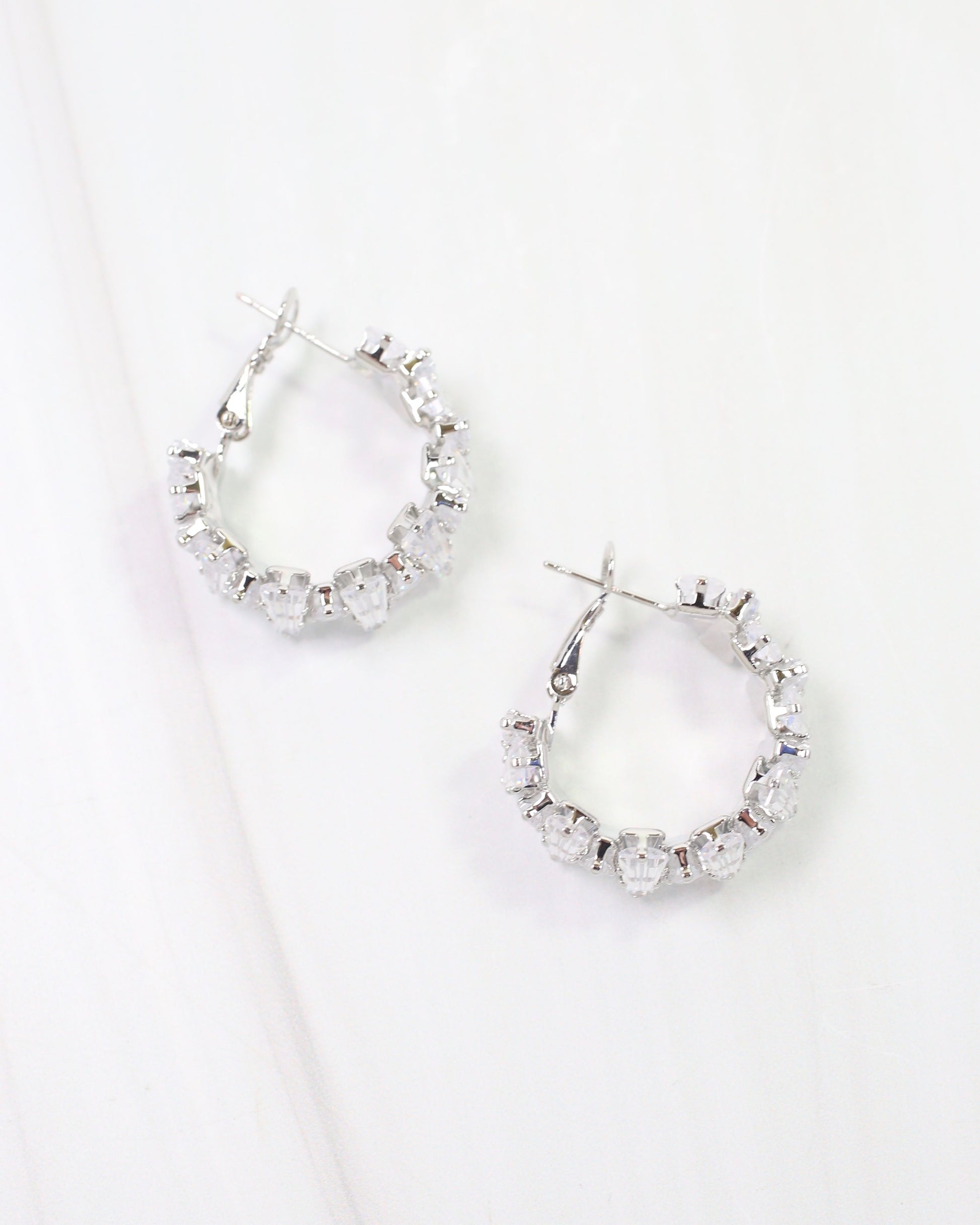 The Fredonia Crystal Latchback Hoops in silver combine classic hoop styling with sparkling crystal accents. Secure and versatile, they add refined glamour to any look.