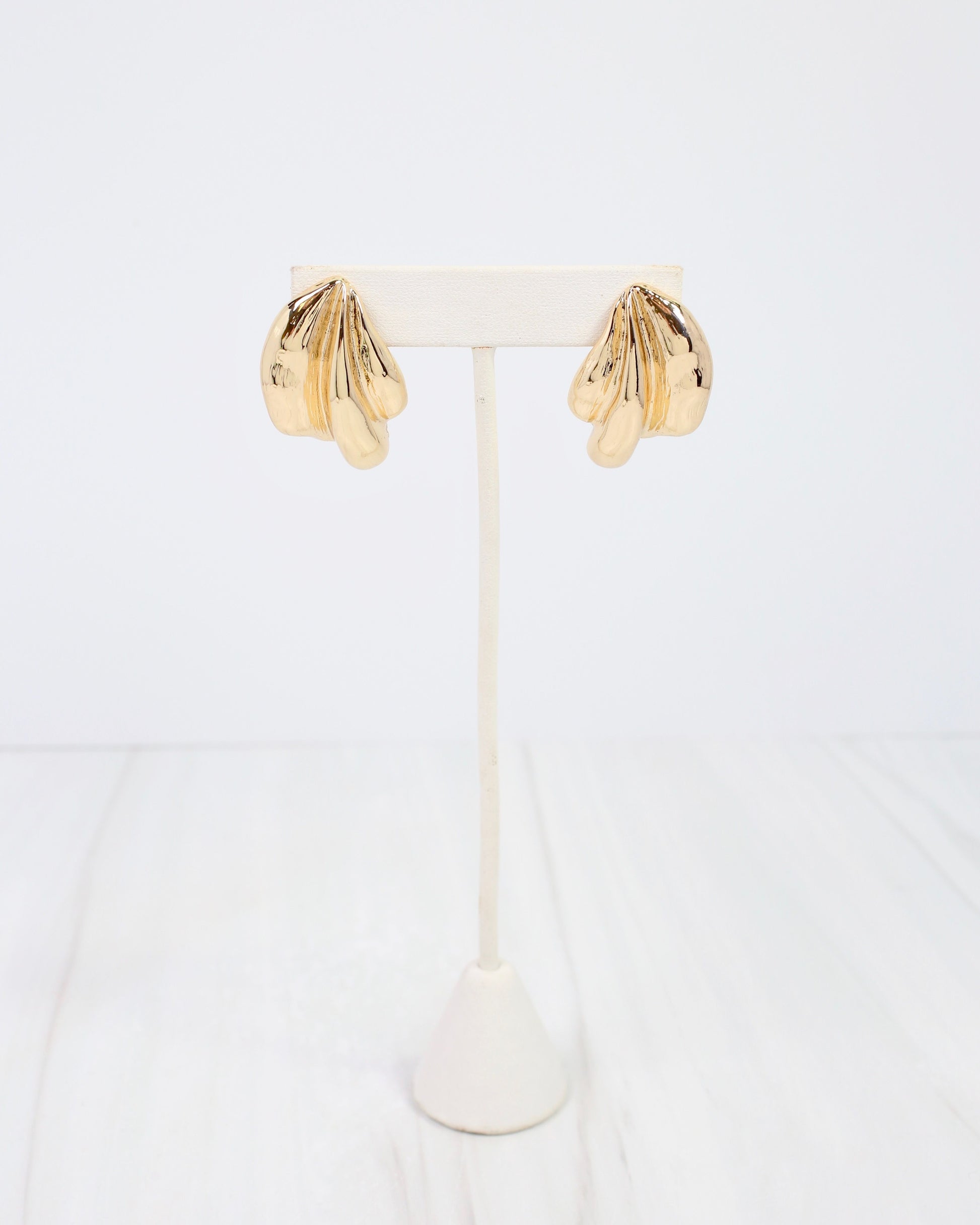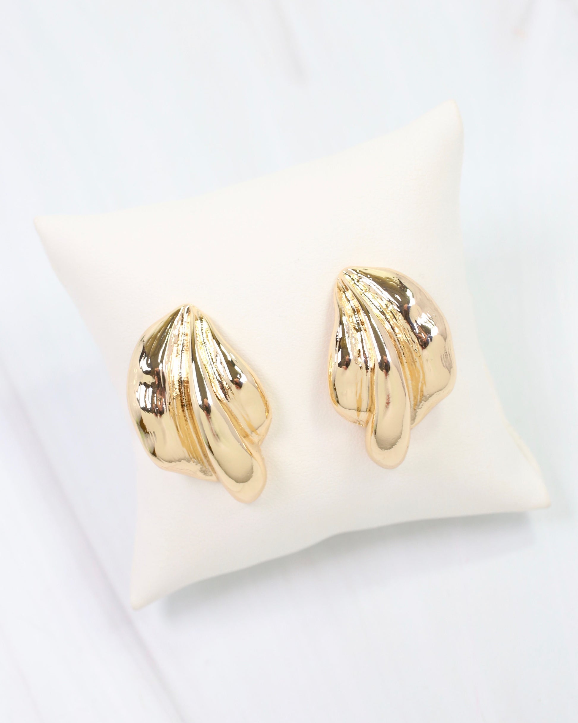 The Halifax Textured Wave Drop Earrings in gold feature dynamic wave silhouettes with intricate surface detail. Cool and contemporary, they frame the face beautifully for both everyday wear and special occasions.