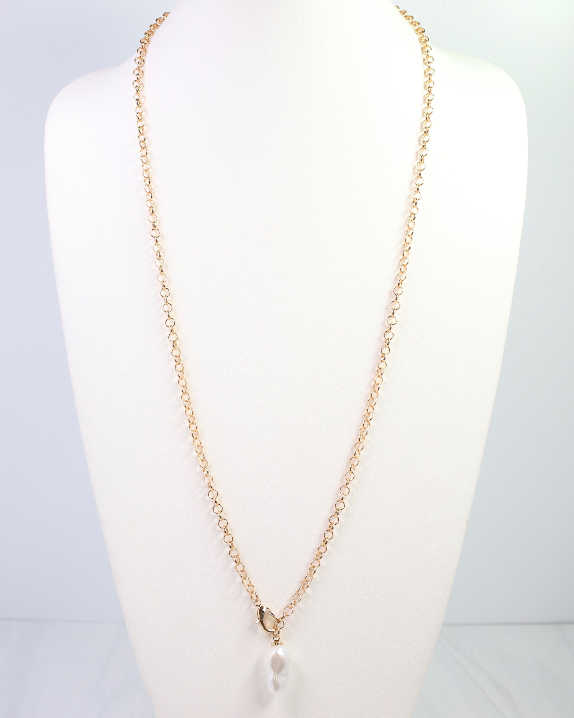 Discover timeless elegance with the Harrodsburg Long Link Necklace, featuring a gold finish and a front clasp adorned with a delicate pearl charm. This necklace combines classic sophistication with modern design, perfect for adding a refined touch to any outfit. Elevate your style effortlessly with this standout piece.