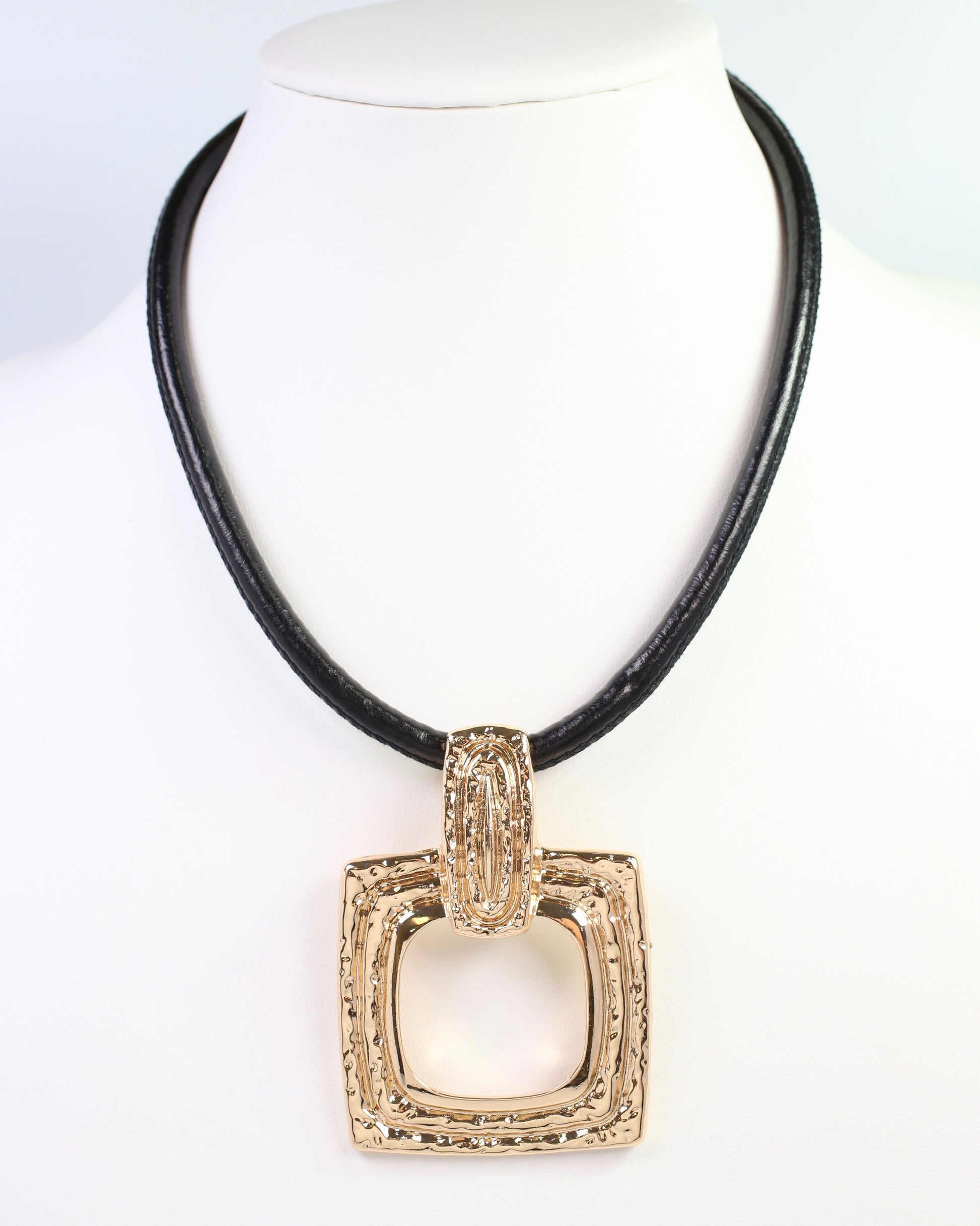 The Henderson Cord Necklace features a bold, large gold pendant suspended on a sleek cord, blending modern style with timeless elegance. Perfect to elevate any outfit with a touch of sophistication.