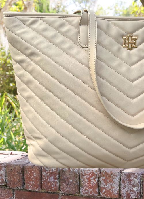 The Nude V Quilted color describes the shape of the quilting on this vegan leather material.