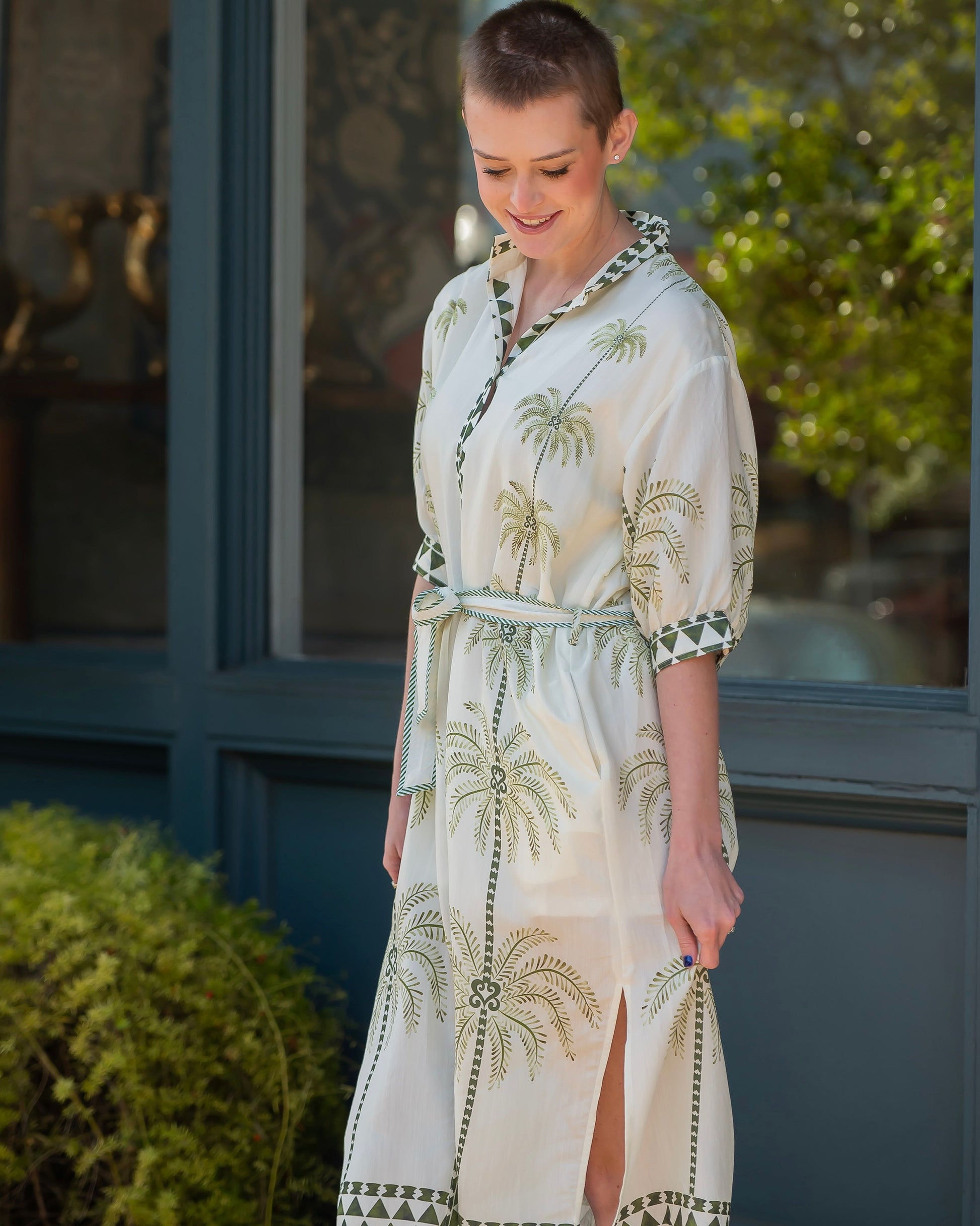 Escape into effortless elegance with this Briar Palm Tree Printed Dress. Featuring a vibrant tropical print that brings resort-ready style to everyday wear, this piece combines comfort with sophistication. The self-tie belt lets you customize your silhouette, while practical side pockets keep essentials within reach. A crisp collar adds polish, and the lined interior ensures a smooth, flattering fit. Perfect for warm-weather adventures or casual office days.