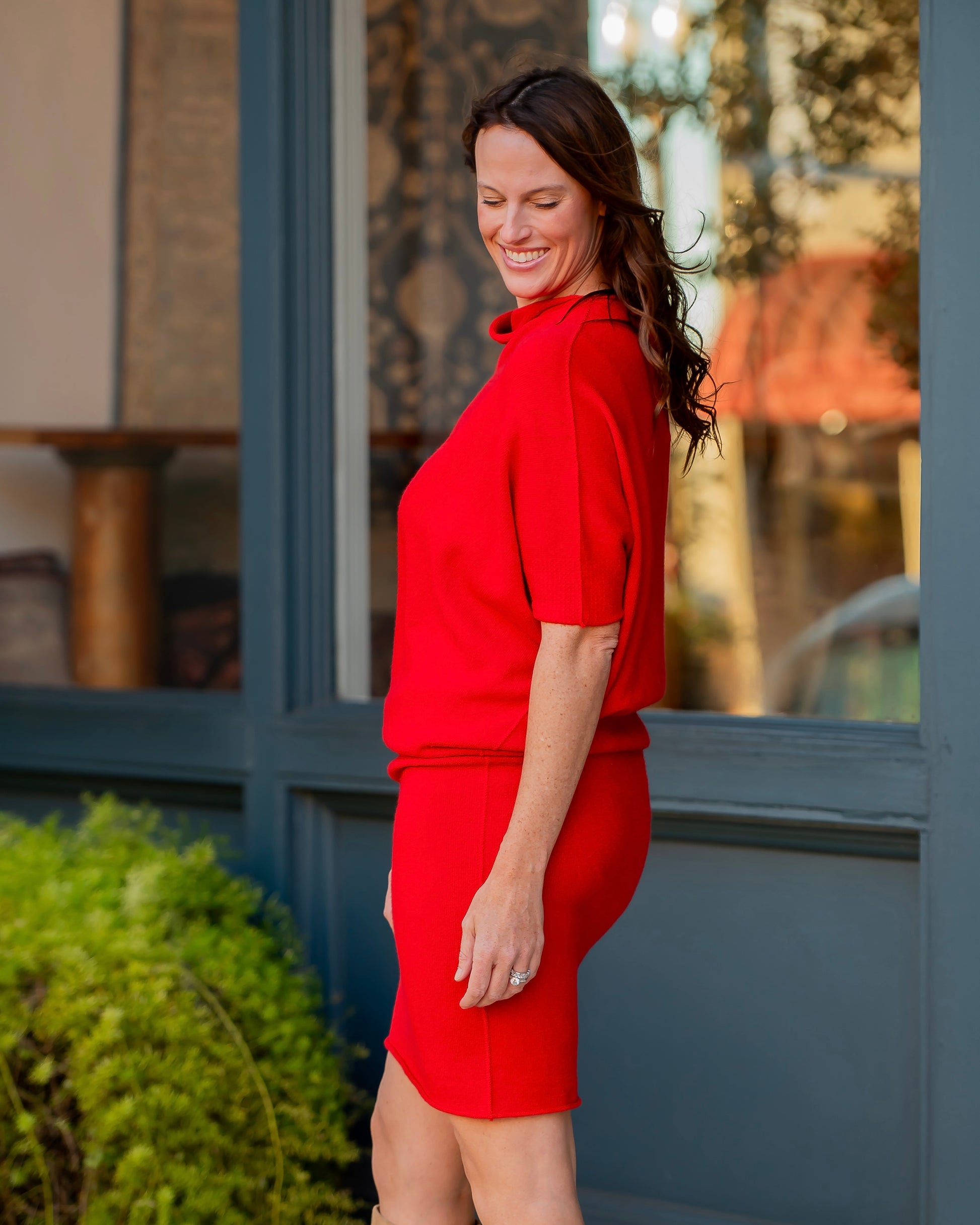 The Jessica Asymmetrical Sweater Dress is your new go-to for effortless style. This rich red stunner features an eye-catching asymmetrical cut that adds modern edge to any outfit. La, Wear it dressy with heels or pair it with sneakers and a leather jacket for weekend cool. Cozy enough for casual days, chic enough for nights out—one dress, endless possibilities.