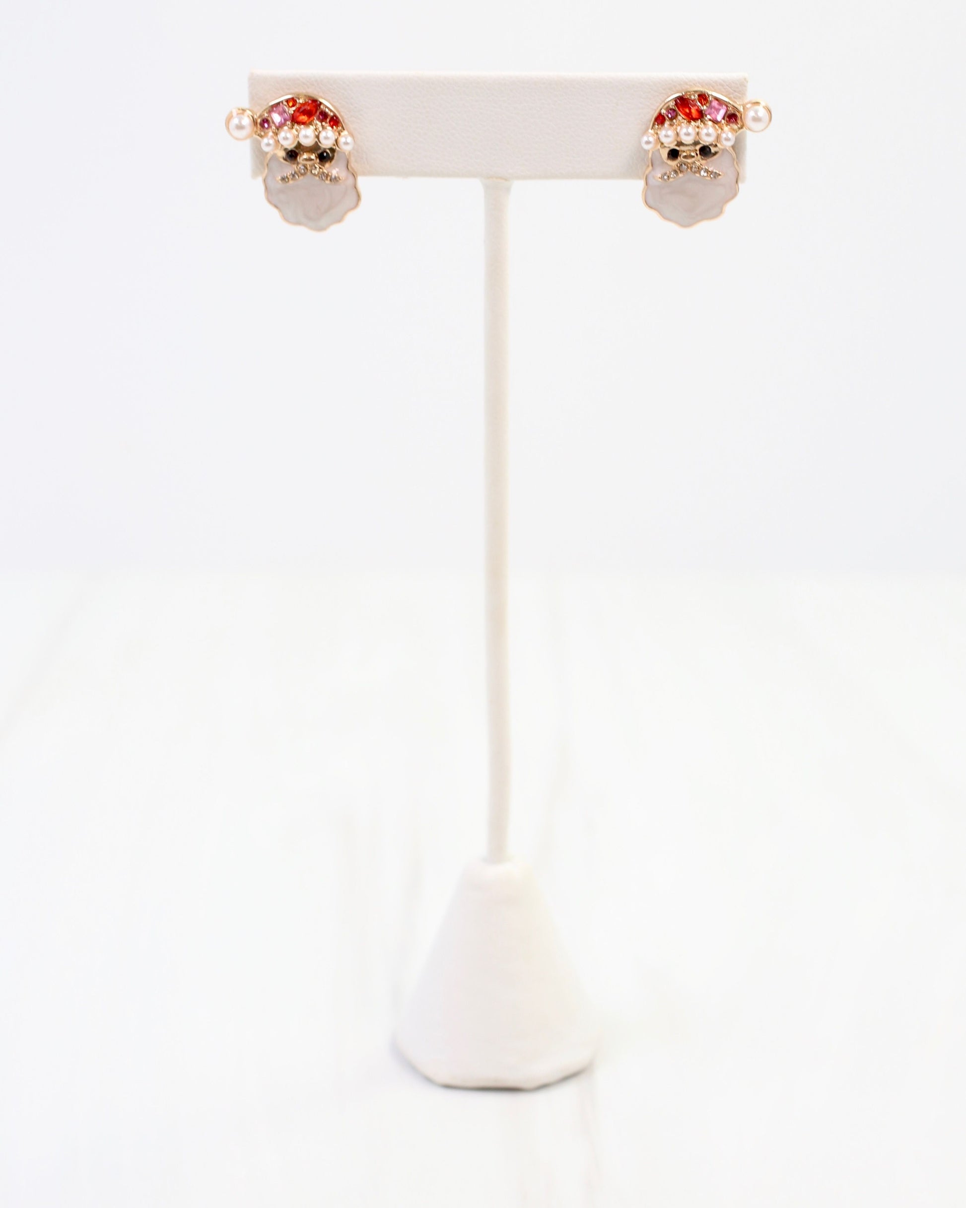 Add festive charm to any outfit with the Jolly Ole St. Nic Stud in Red. Featuring a sparkling red crystal Santa hat, a crisp white enamel beard, and a delicate pearl trim, this stylish stud captures holiday spirit with elegant detail. Perfect for accessorizing seasonal looks with a refined touch.