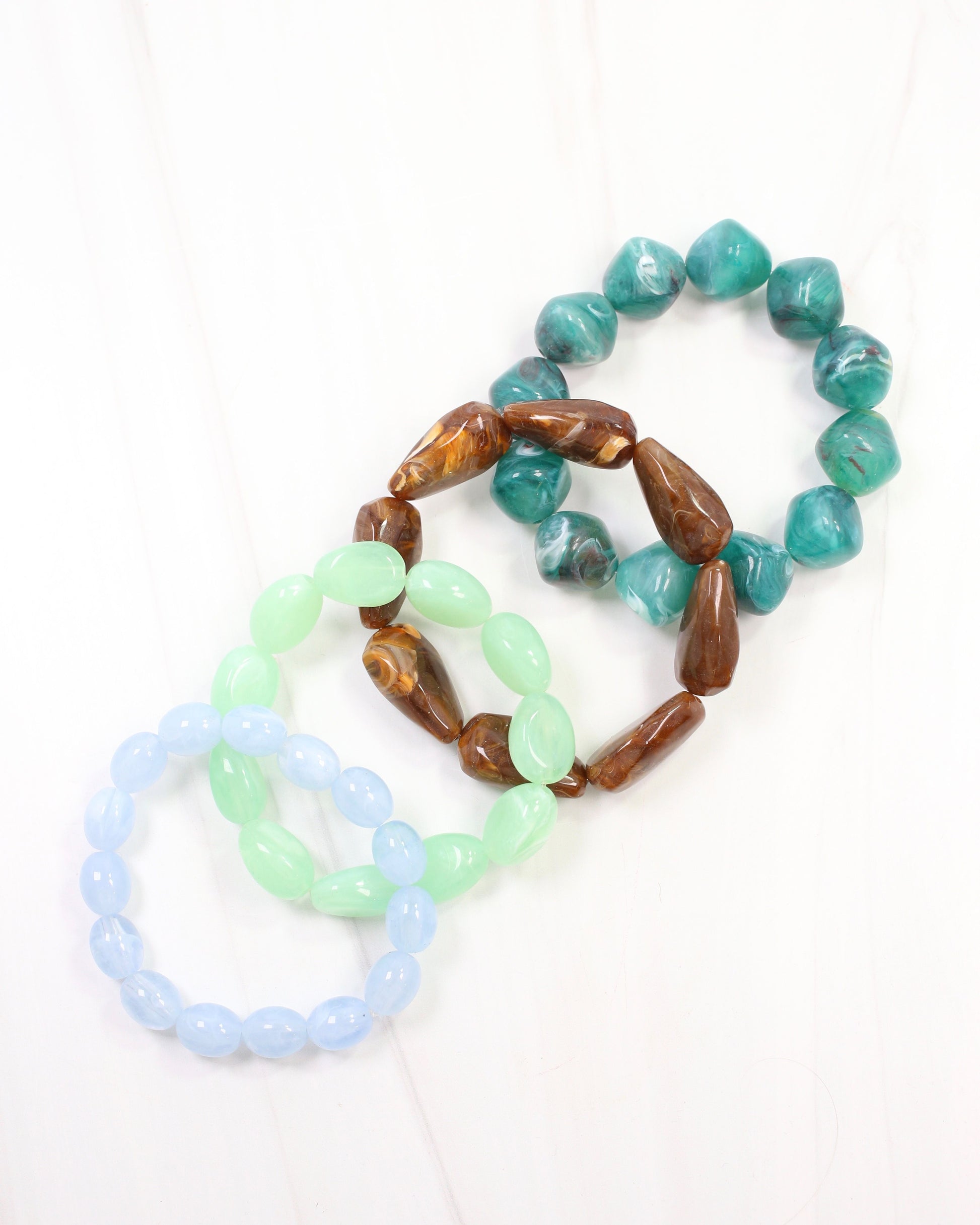 Refresh your accessory game with the Joplin Marble Beaded Bracelet Set in turquoise. This five-piece collection features eye-catching marble-effect beads in vibrant turquoise that instantly elevates any outfit. Wear them solo for a pop of color or layer multiple pieces for a trendy, personalized look. Stretchy and comfortable for all-day styling.